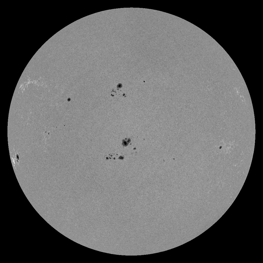 | Номер группы | Координаты на Солнце | Число пятен в группе | Классификация группы по модифицированной системе Цюриха | Площадь (в миллионных долях солнечной полусферы) | Протяженность группы (в градусах) | Кэррингтоновская долгота группы (в градусах дуги) | Магнитный тип группы |