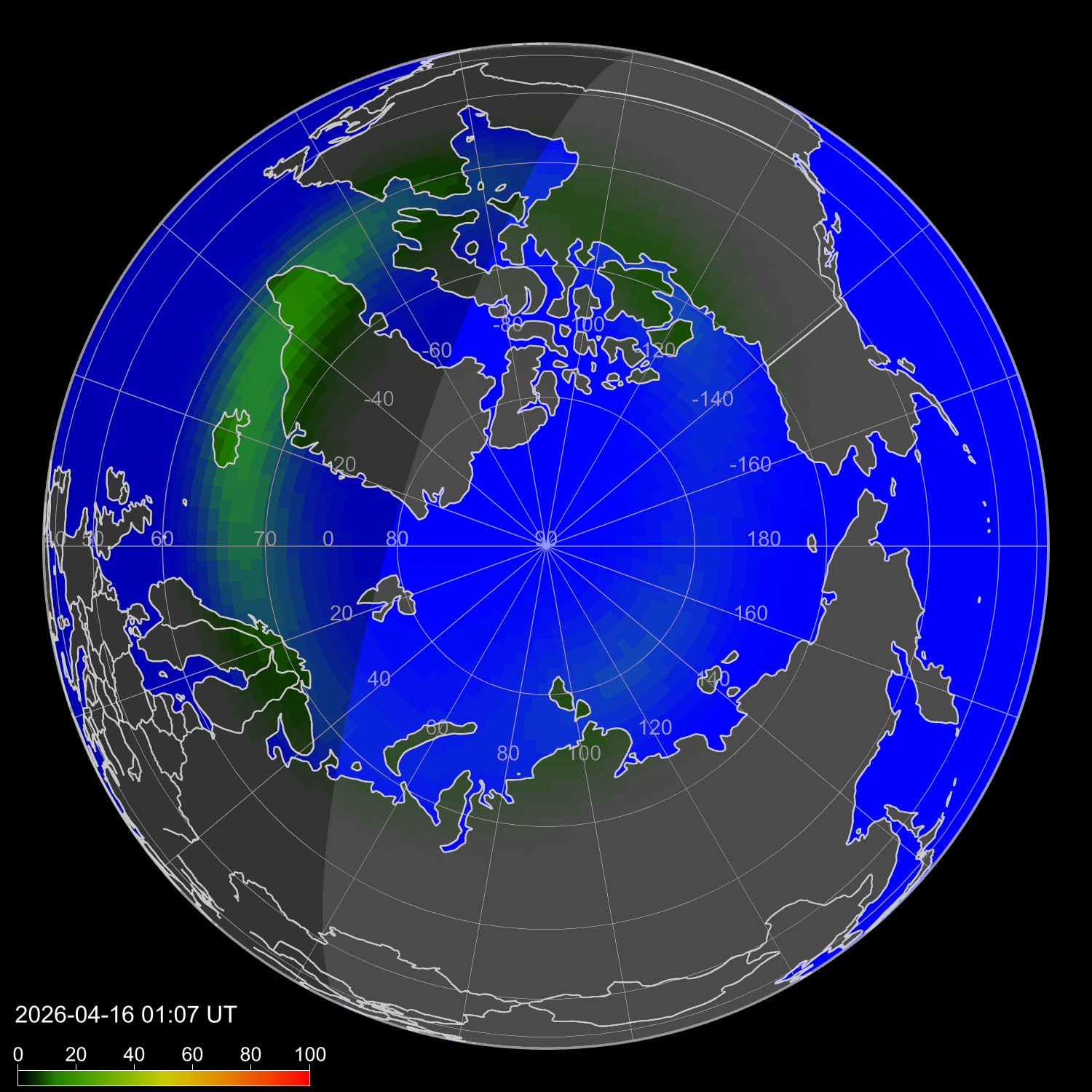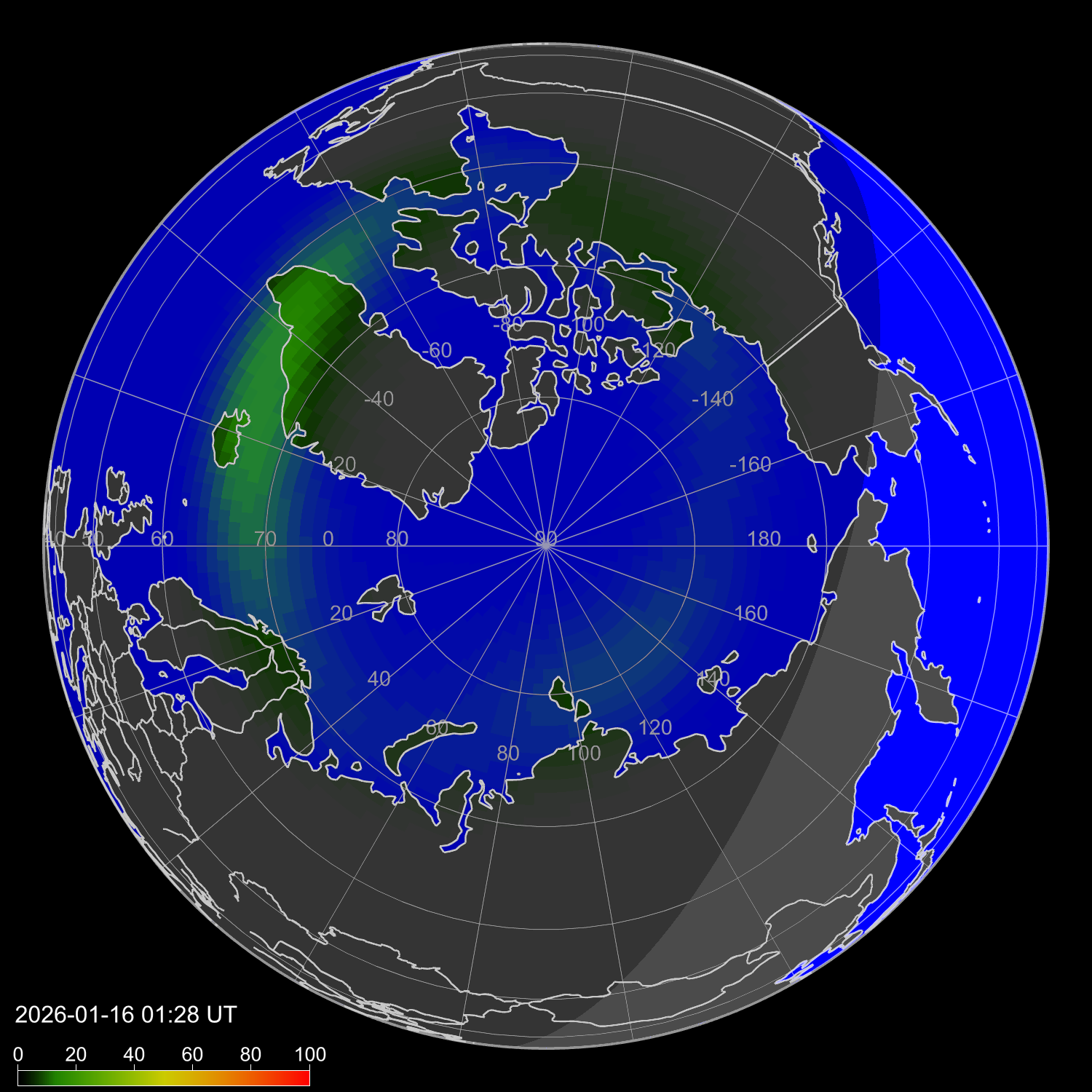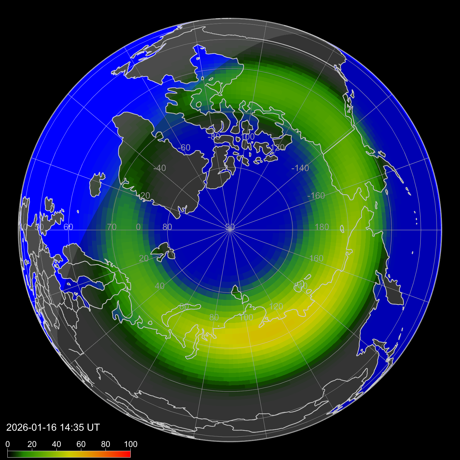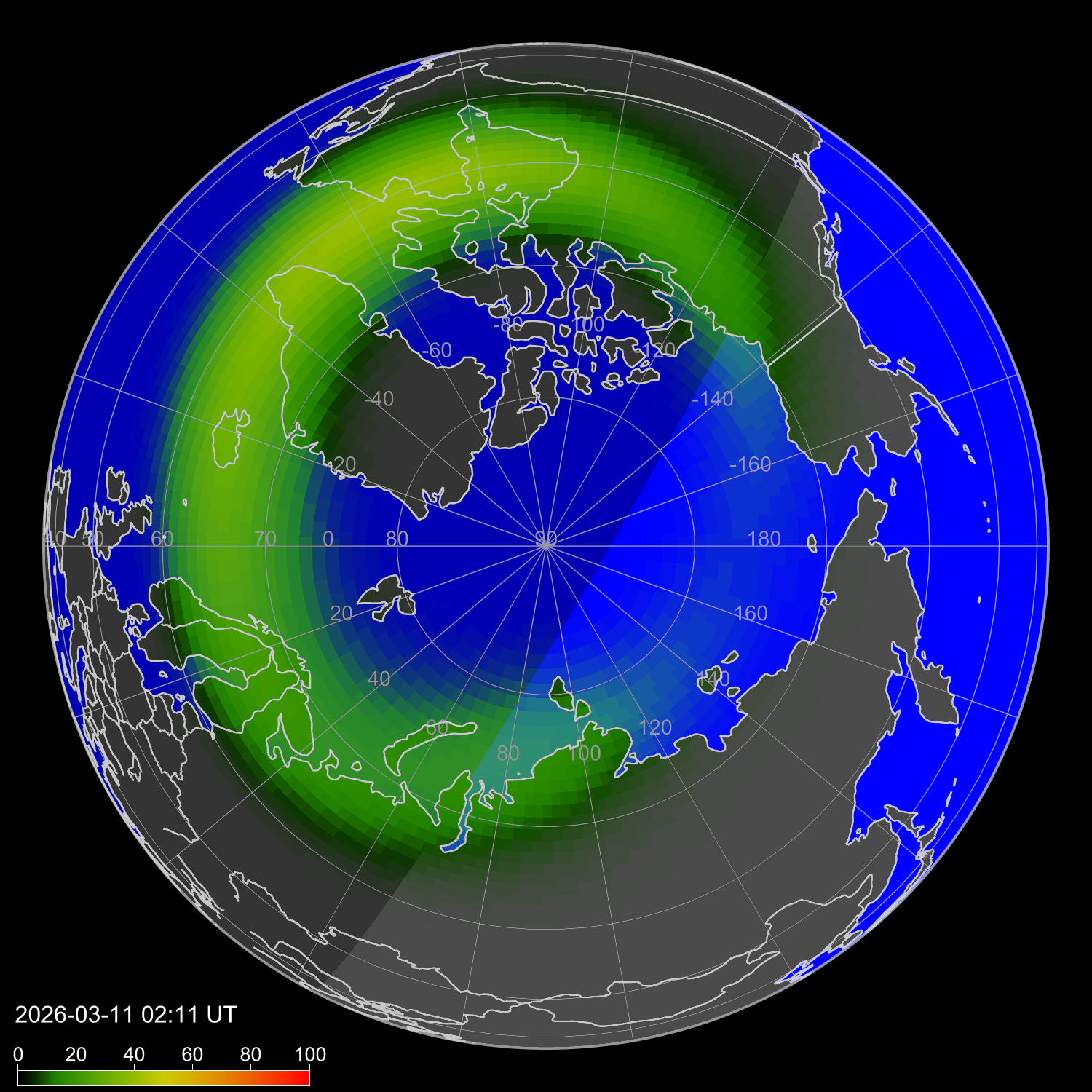 Интенсивность полярных сияний