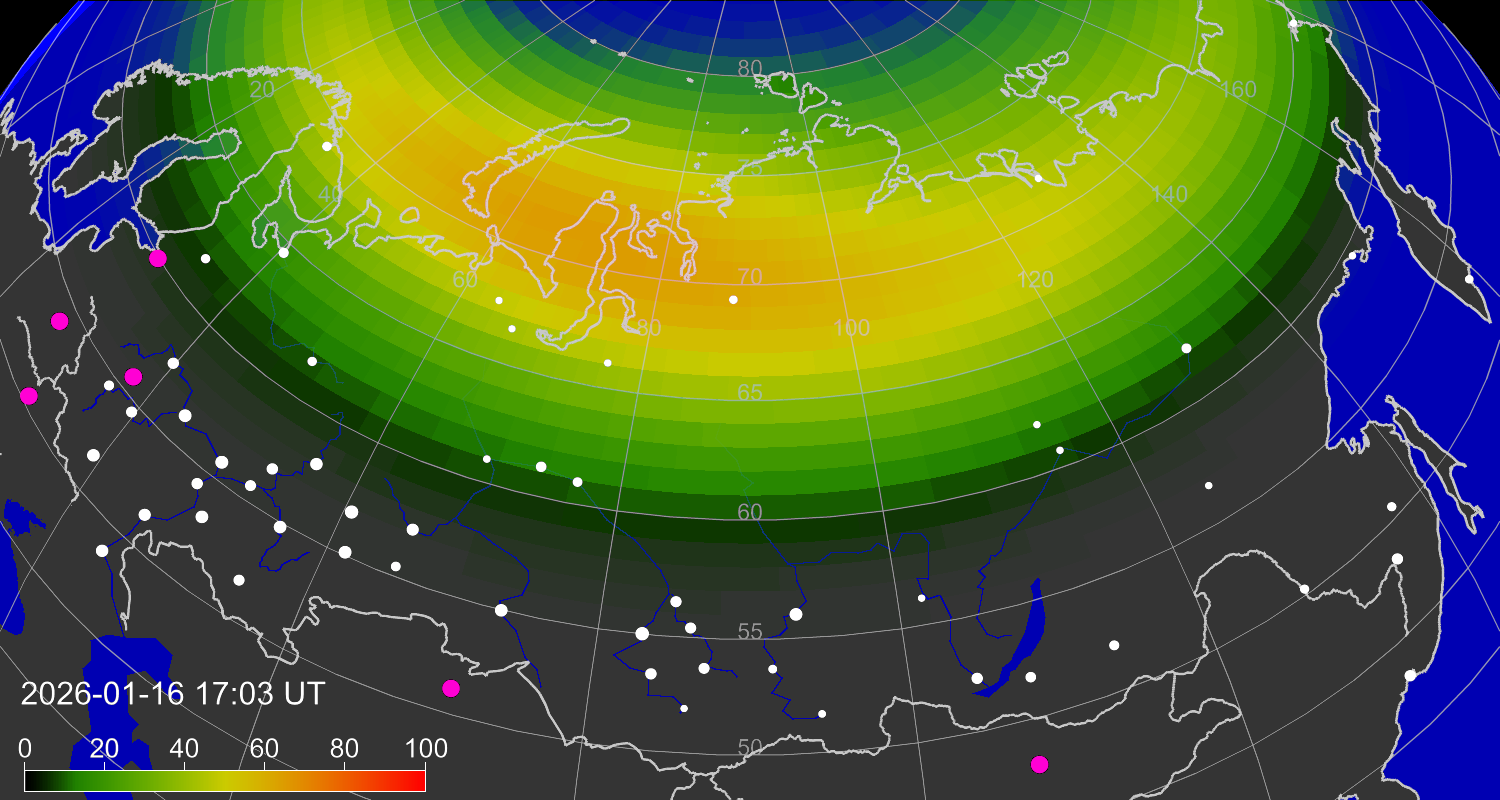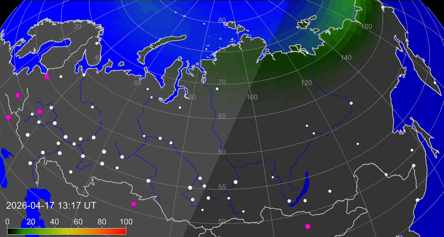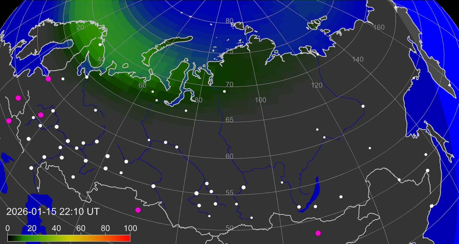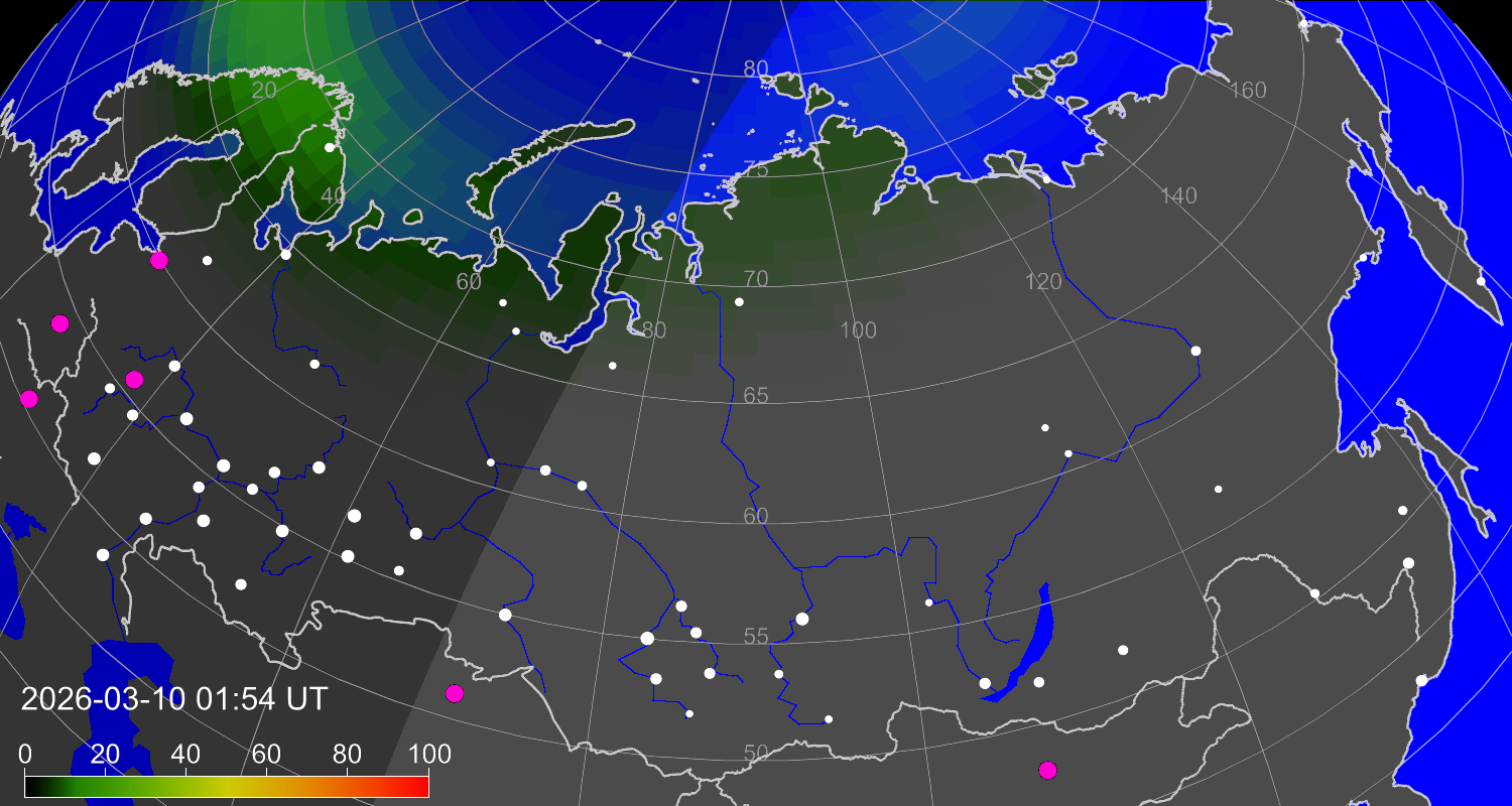 Вероятность полярных сияний в Москве