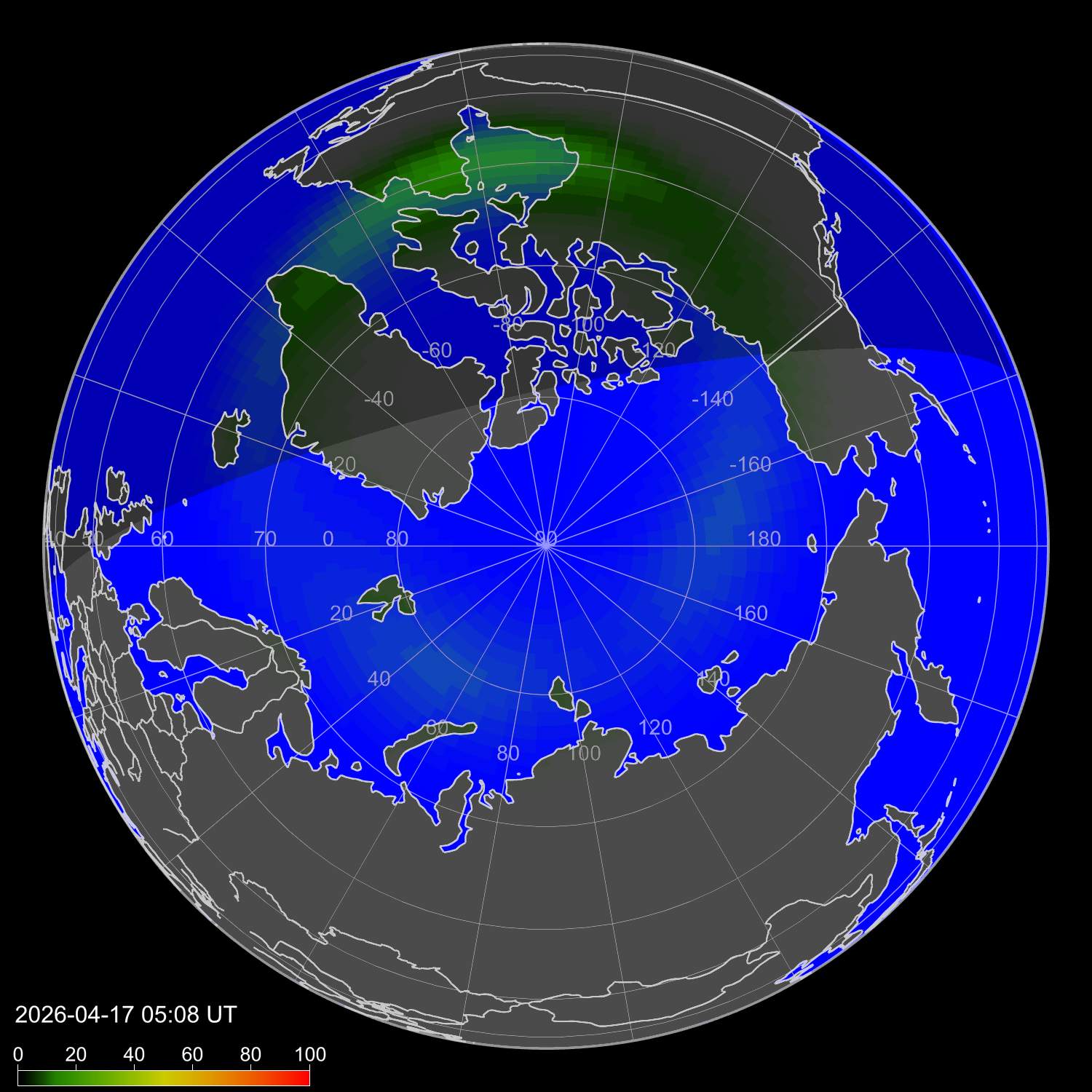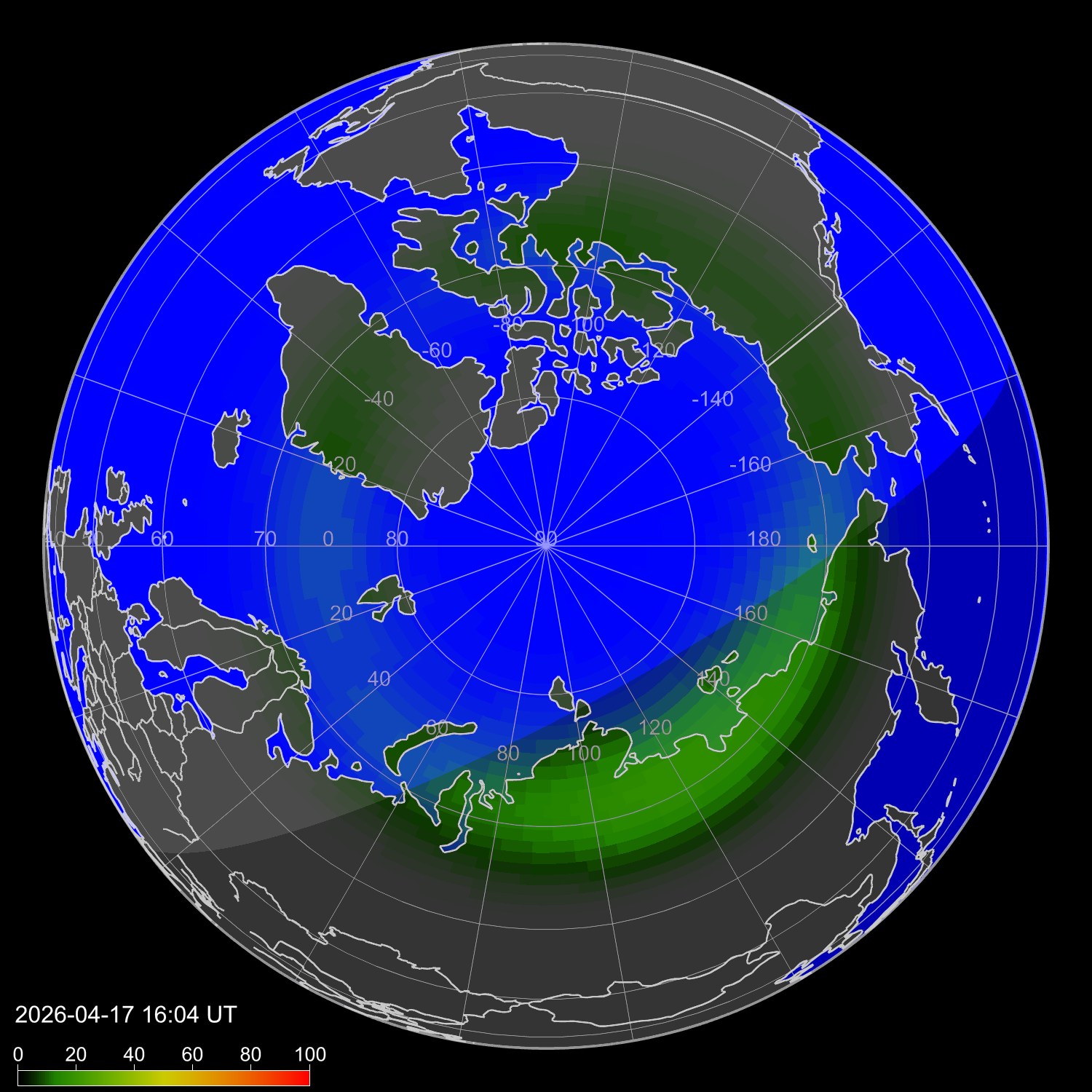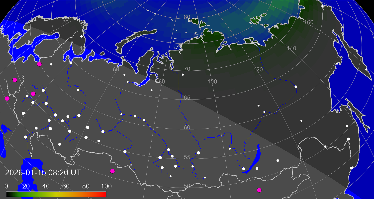 Вероятность полярных сияний в Москве