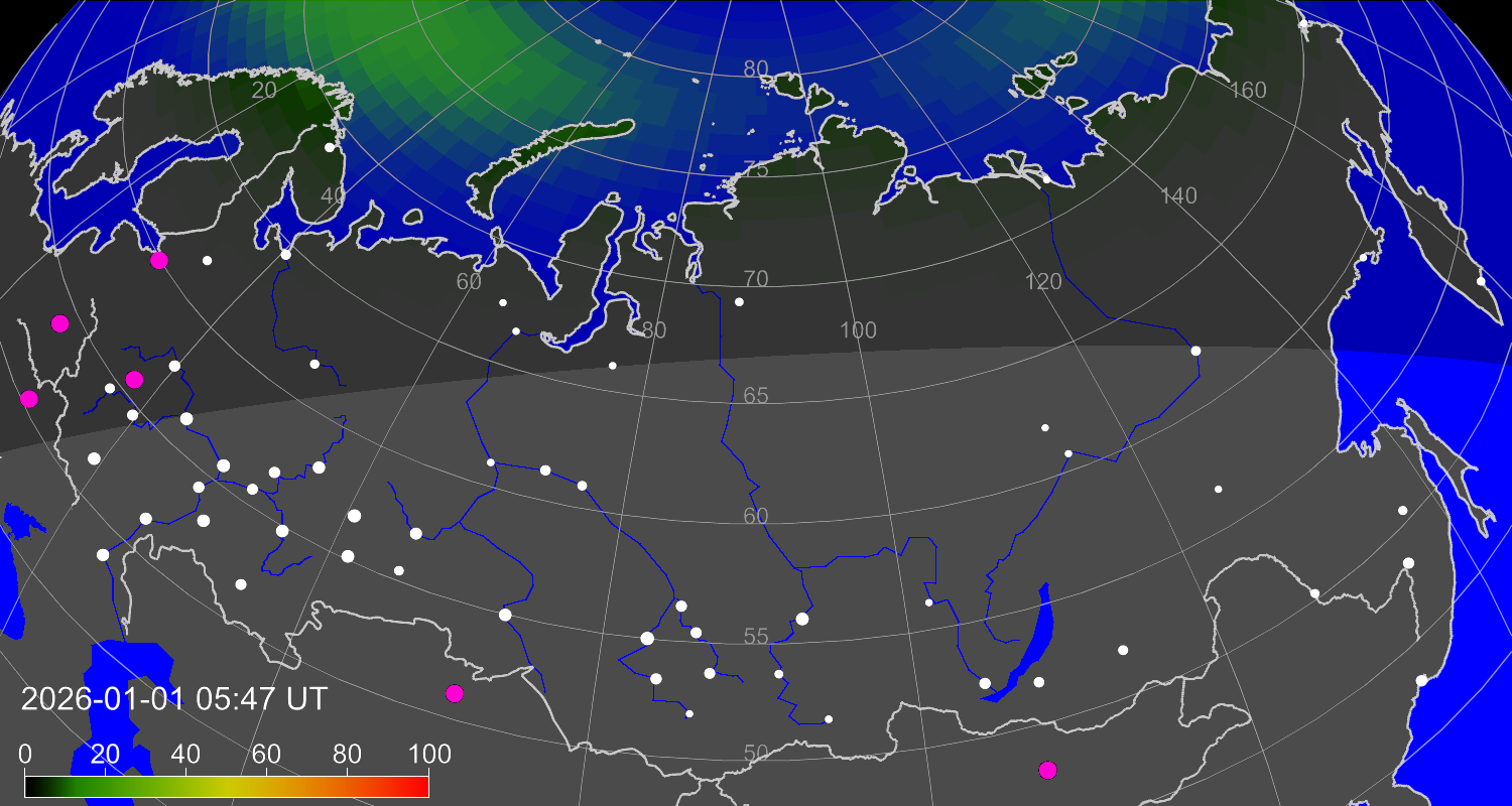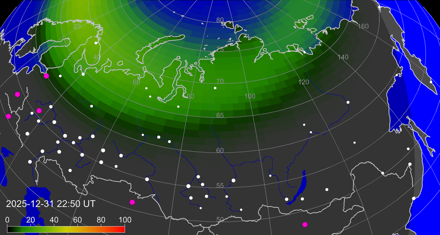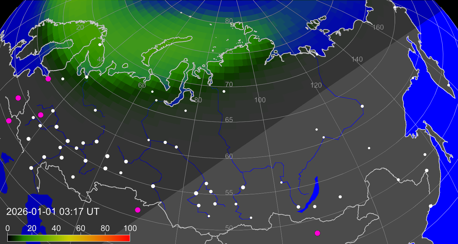 Зона полярных (северных) сияний над территорией Евразии