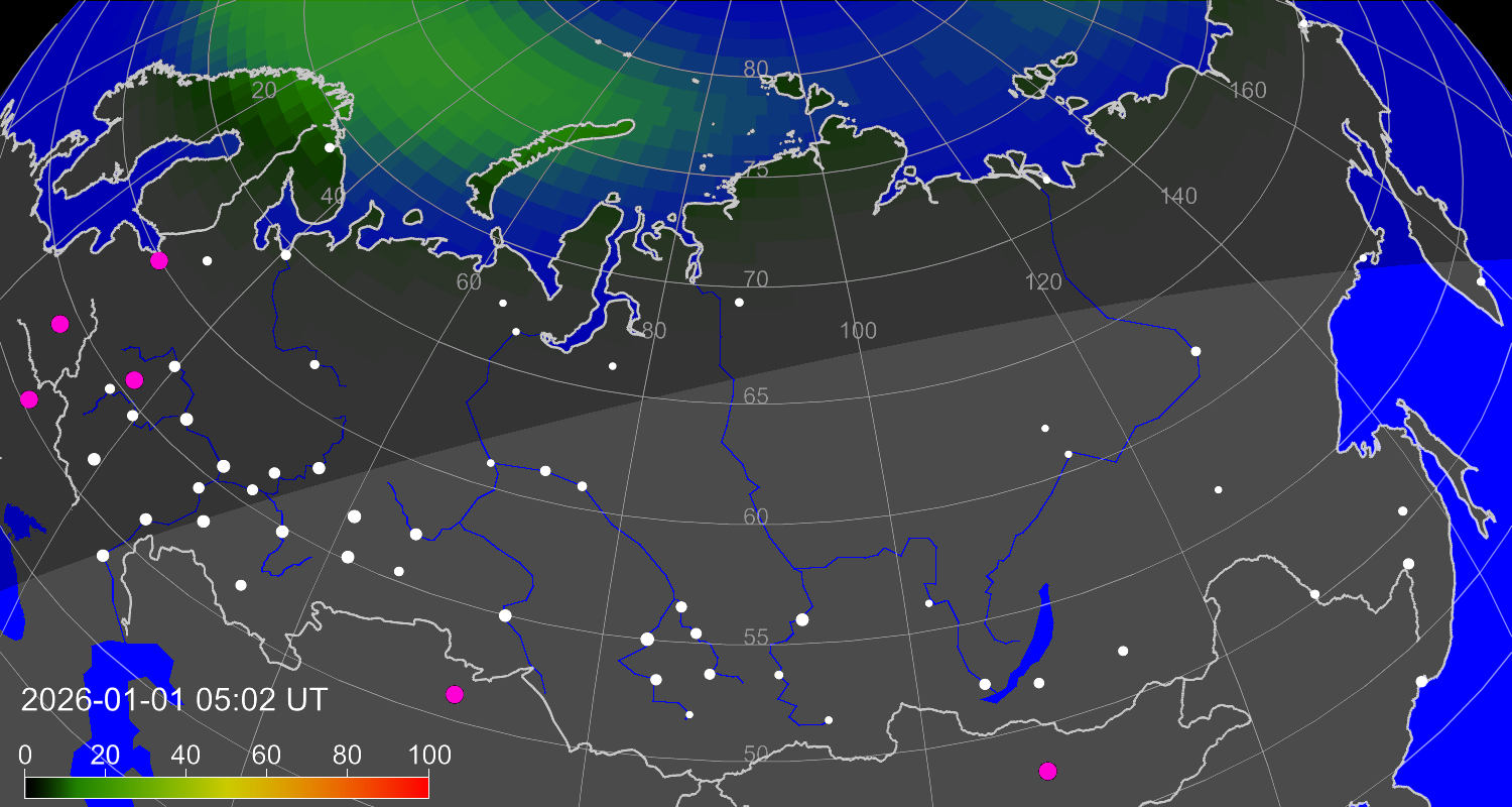 Зона полярных (северных) сияний над территорией Евразии