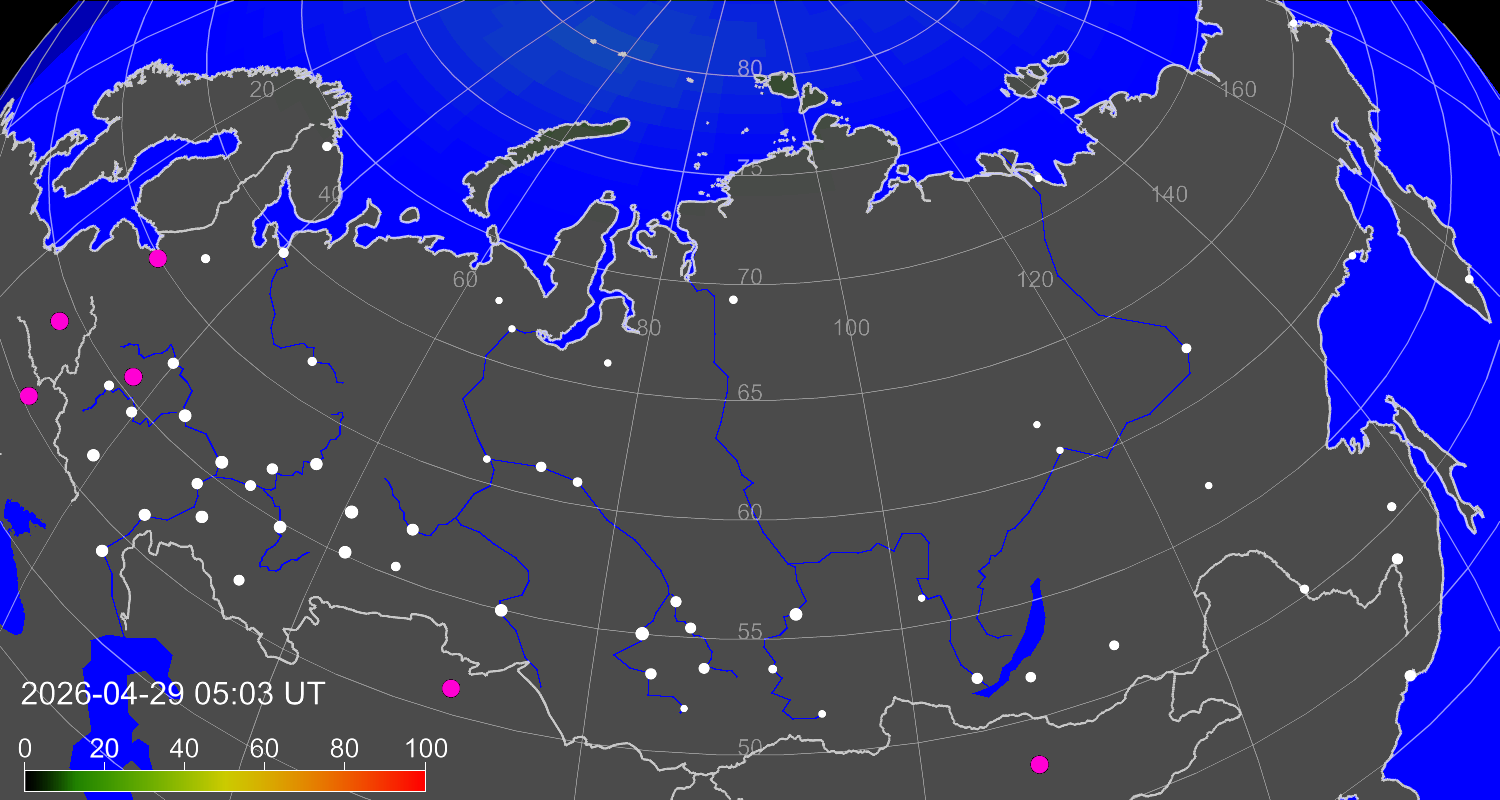 Вероятность полярных сияний в городах Российской Федерации