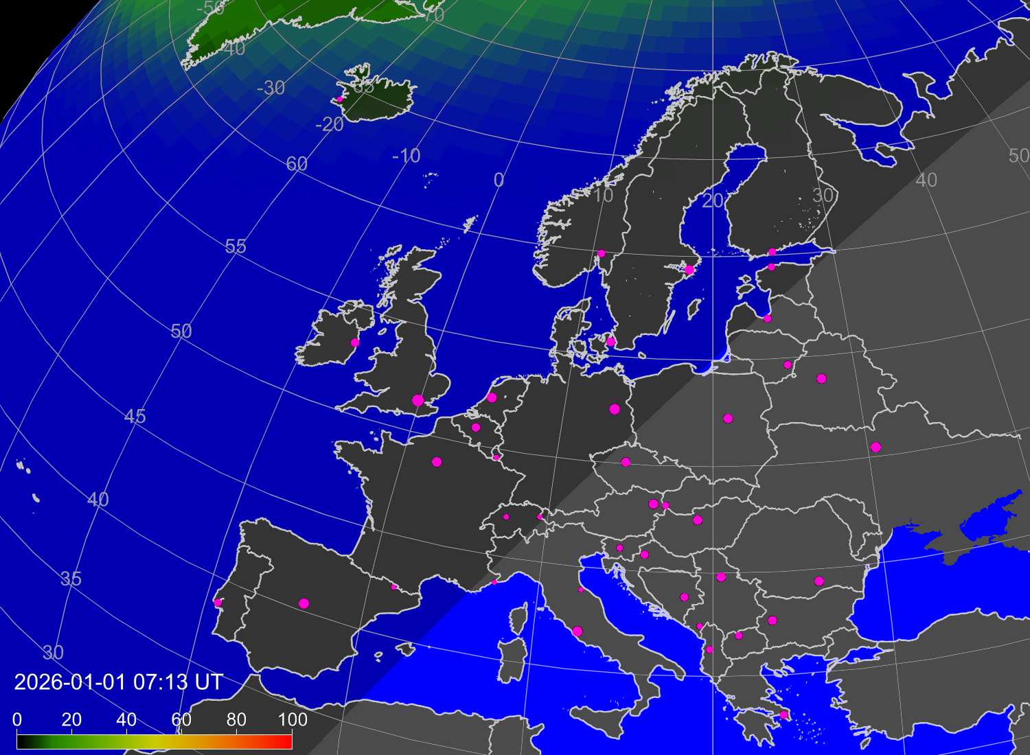 Вероятность полярных сияний в городах Европы