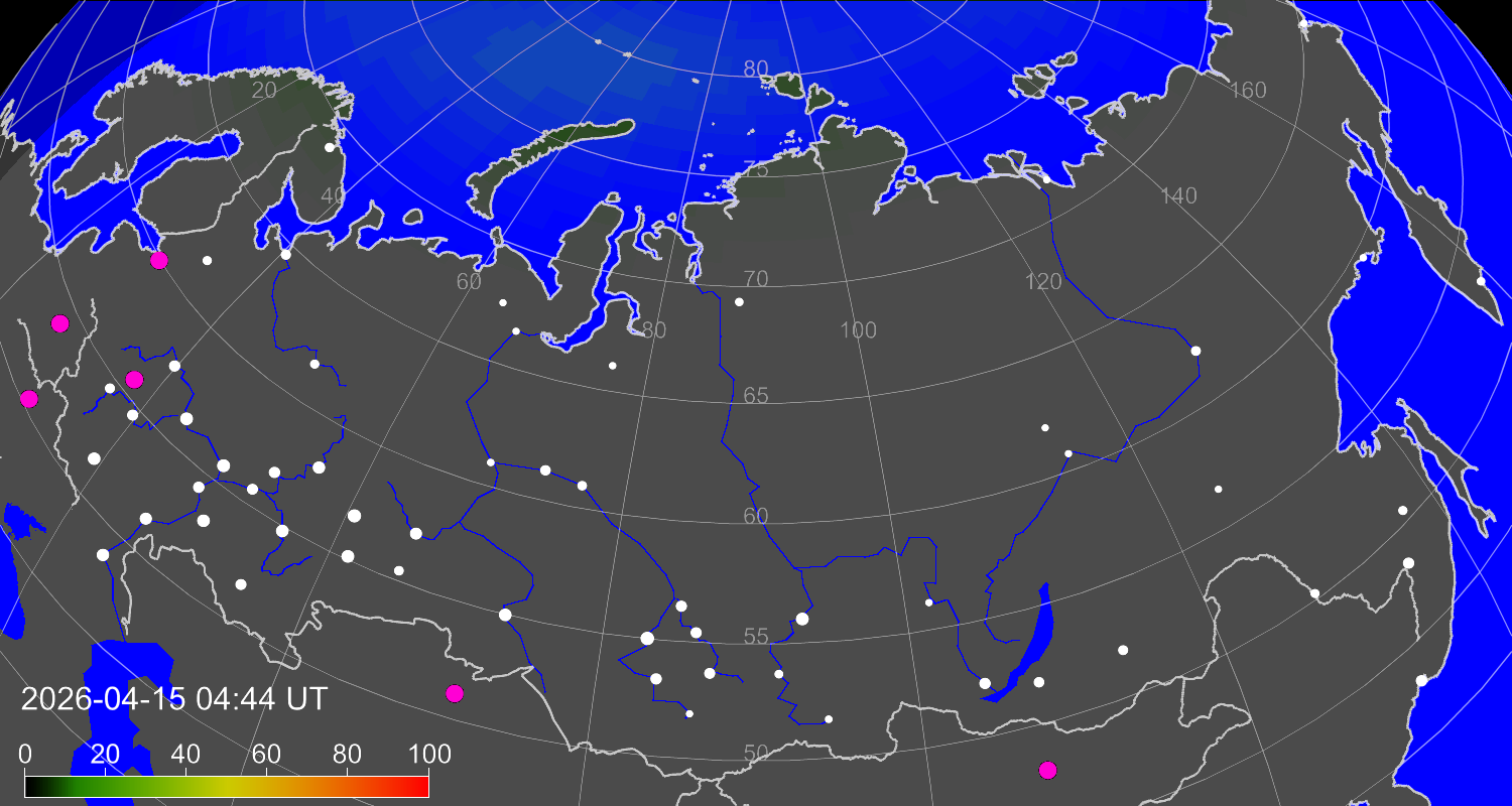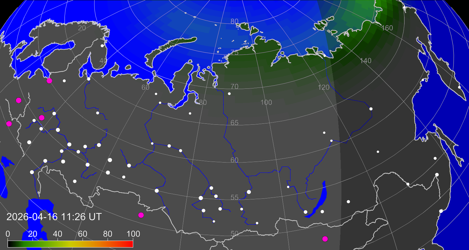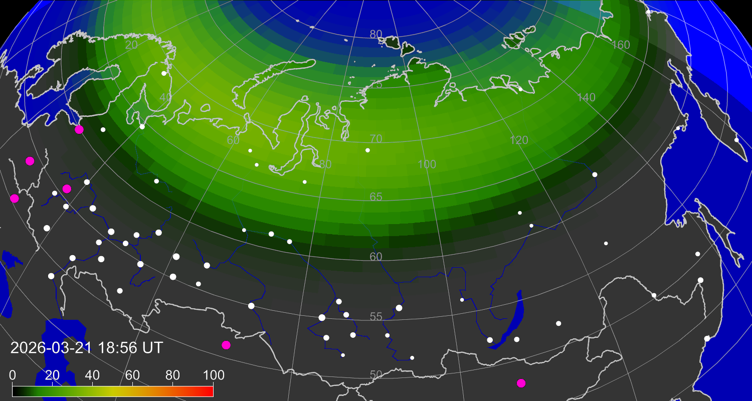 Вероятность полярных сияний в городах Российской Федерации