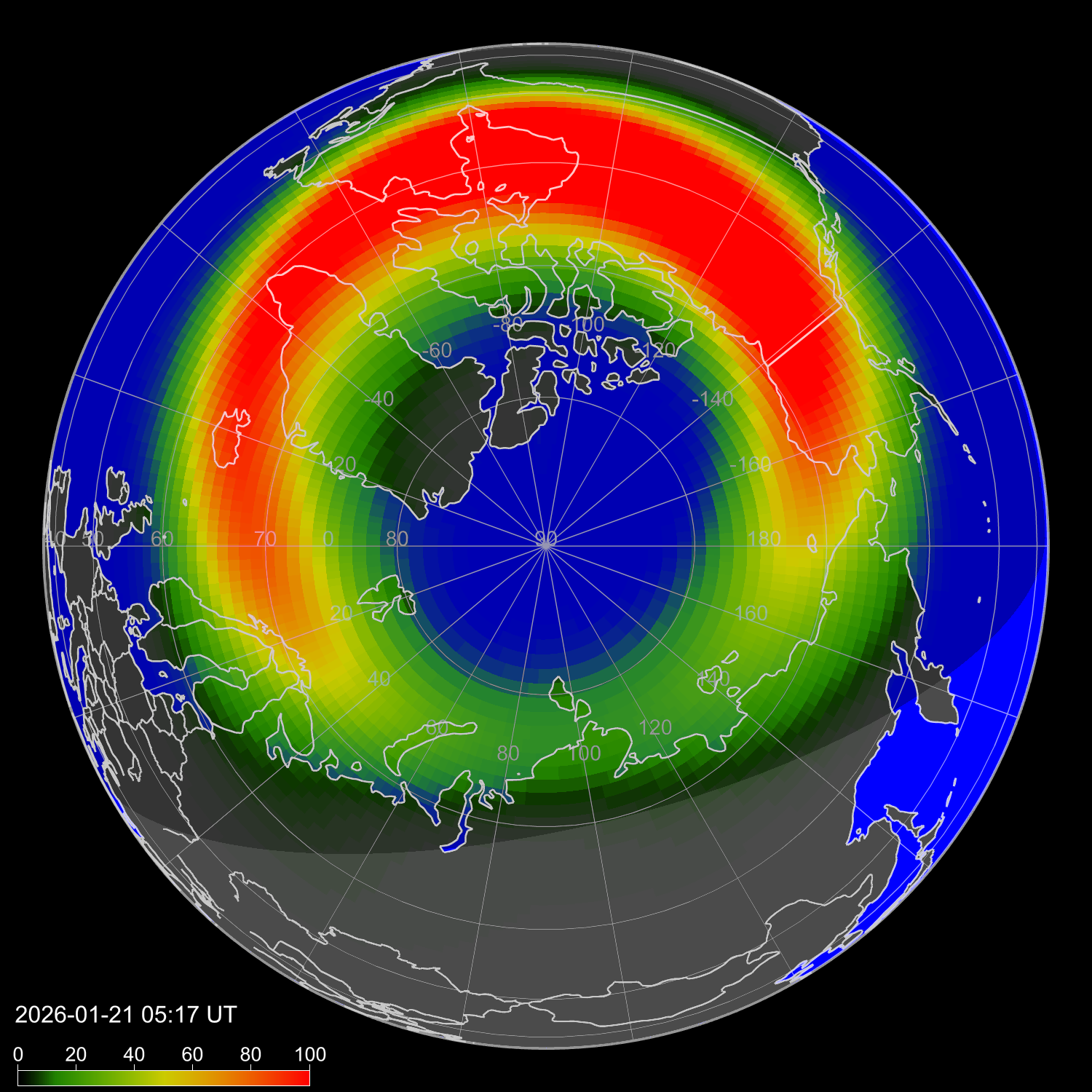 Зона полярных сияний в северном полушарии