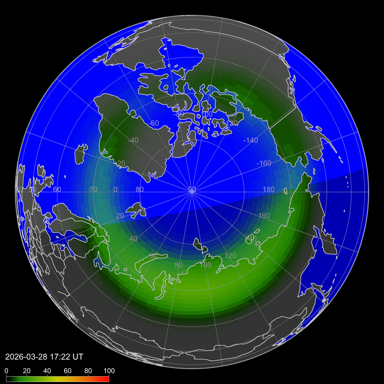 Интенсивность полярных сияний