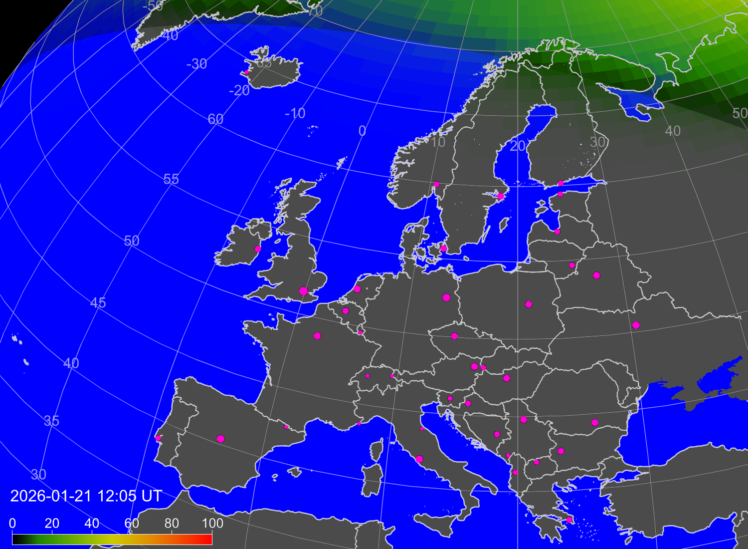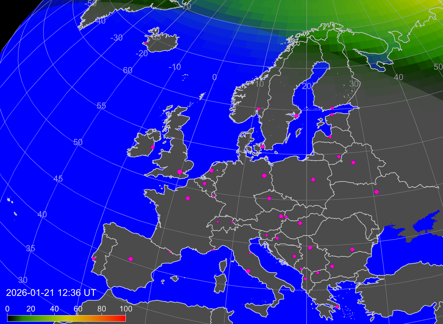 Вероятность полярных сияний в городах Европы