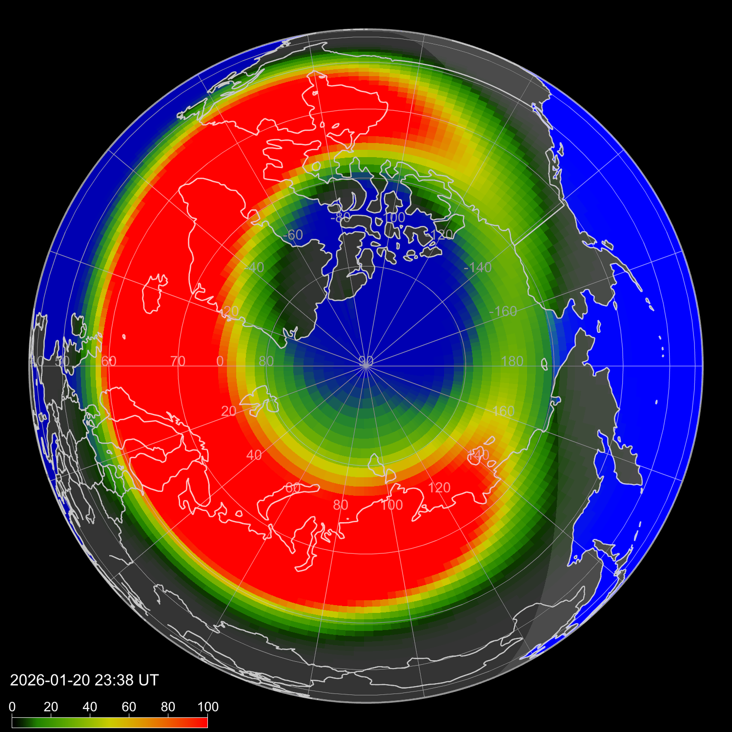 Зона полярных сияний в северном полушарии