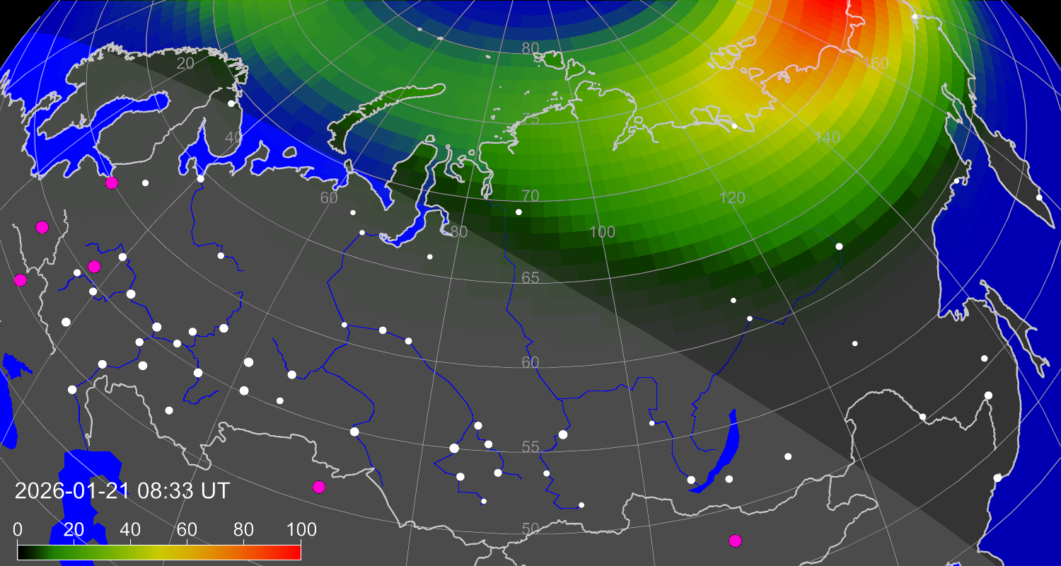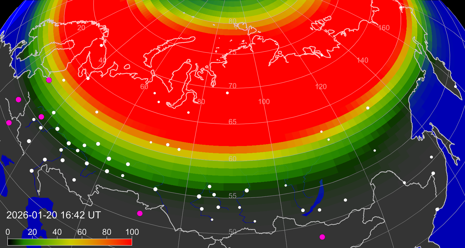 Зона полярных (северных) сияний над территорией Евразии