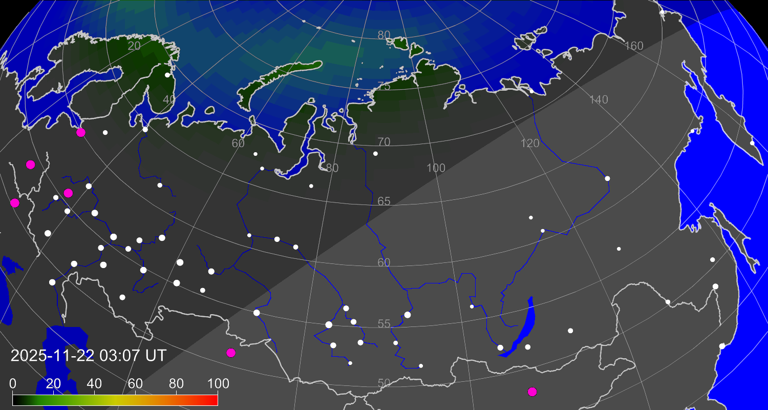 Вероятность полярных сияний в городах Российской Федерации