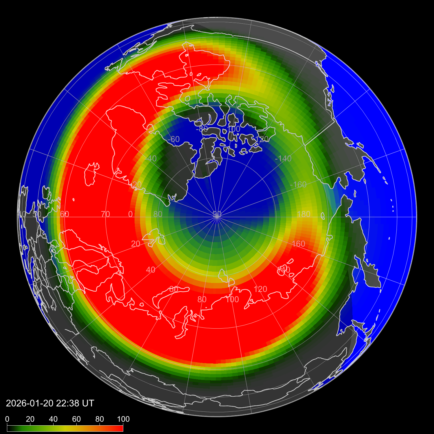 Зона полярных сияний в северном полушарии