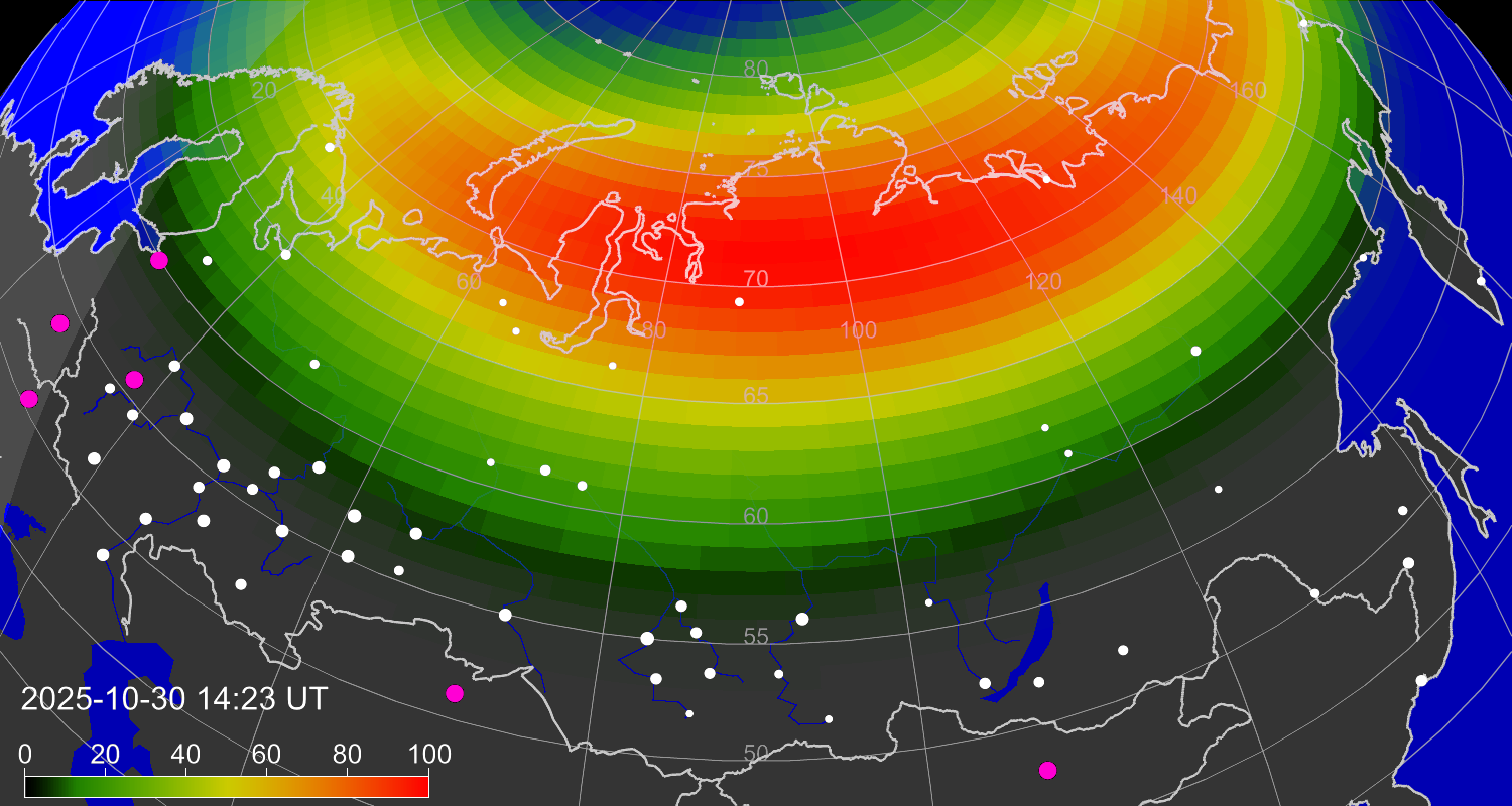 Прогноз на 2025-10-30 17:23 по времени Череповце