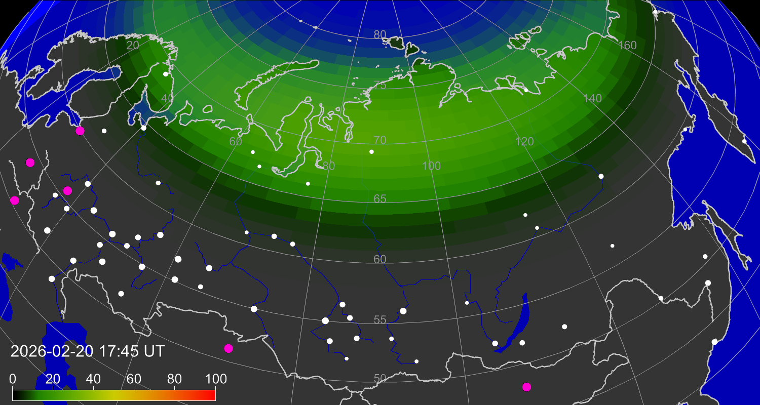 Зона полярных (северных) сияний над территорией Евразии