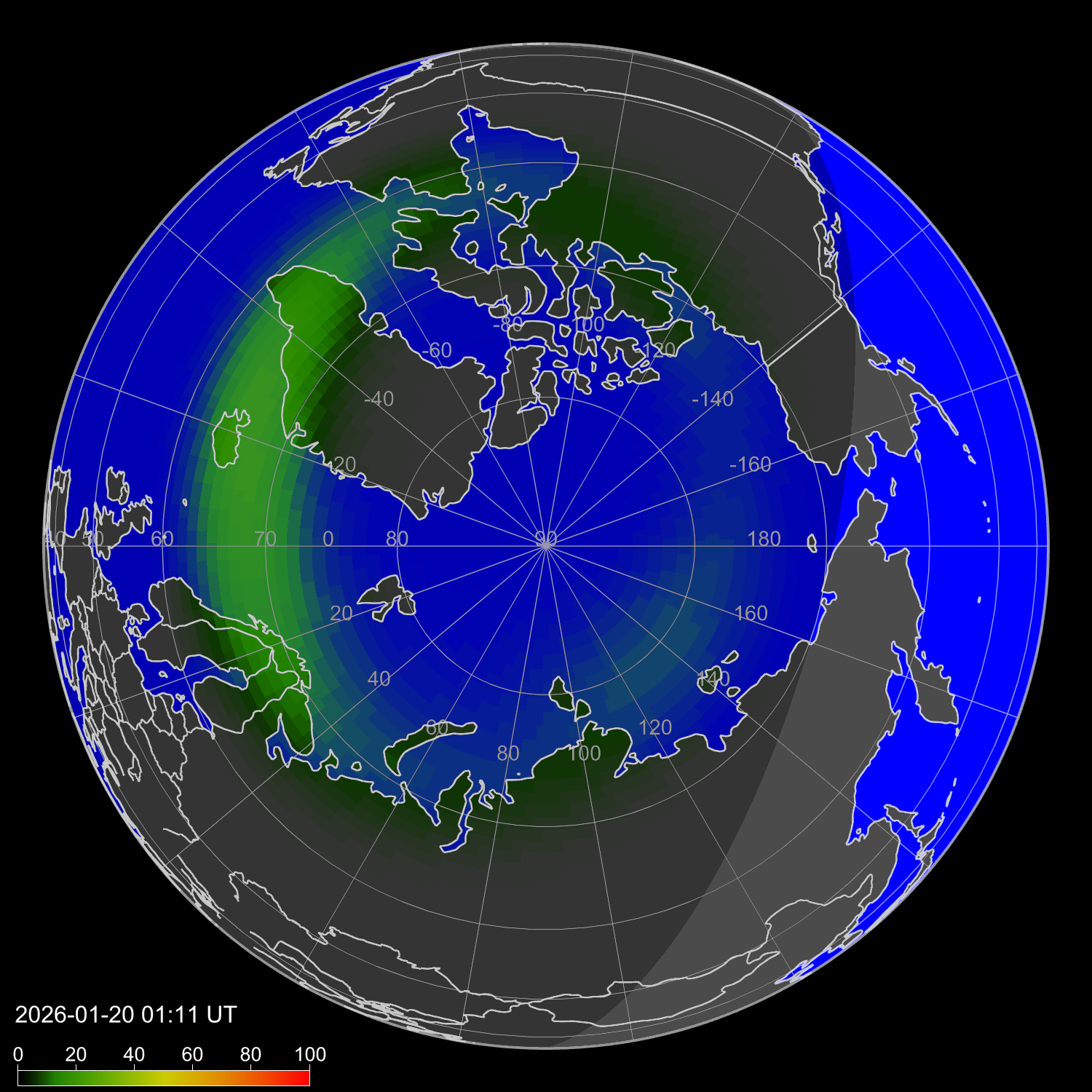 Зона полярных сияний в северном полушарии