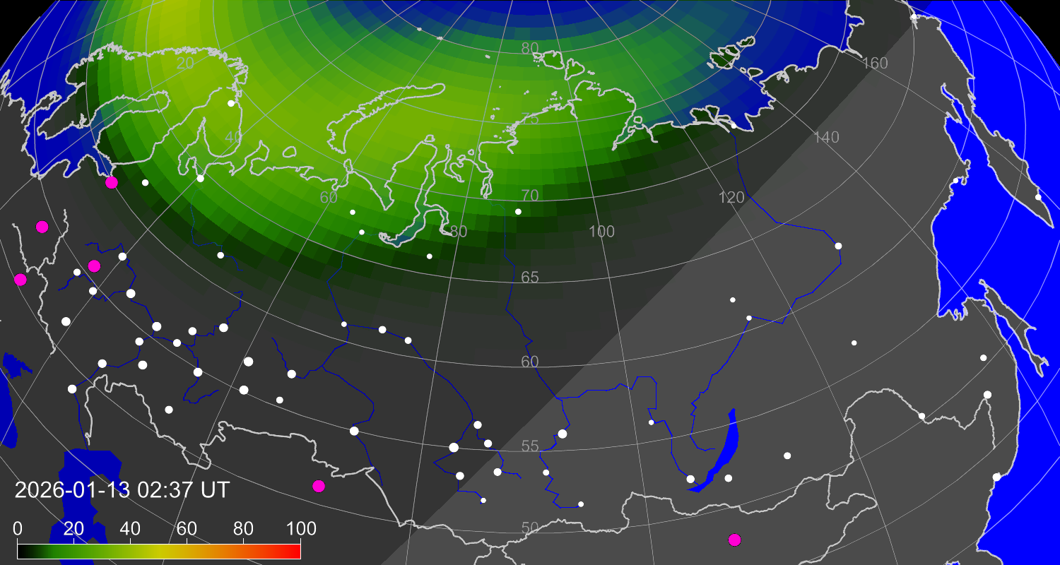 Зона полярных (северных) сияний над территорией Евразии