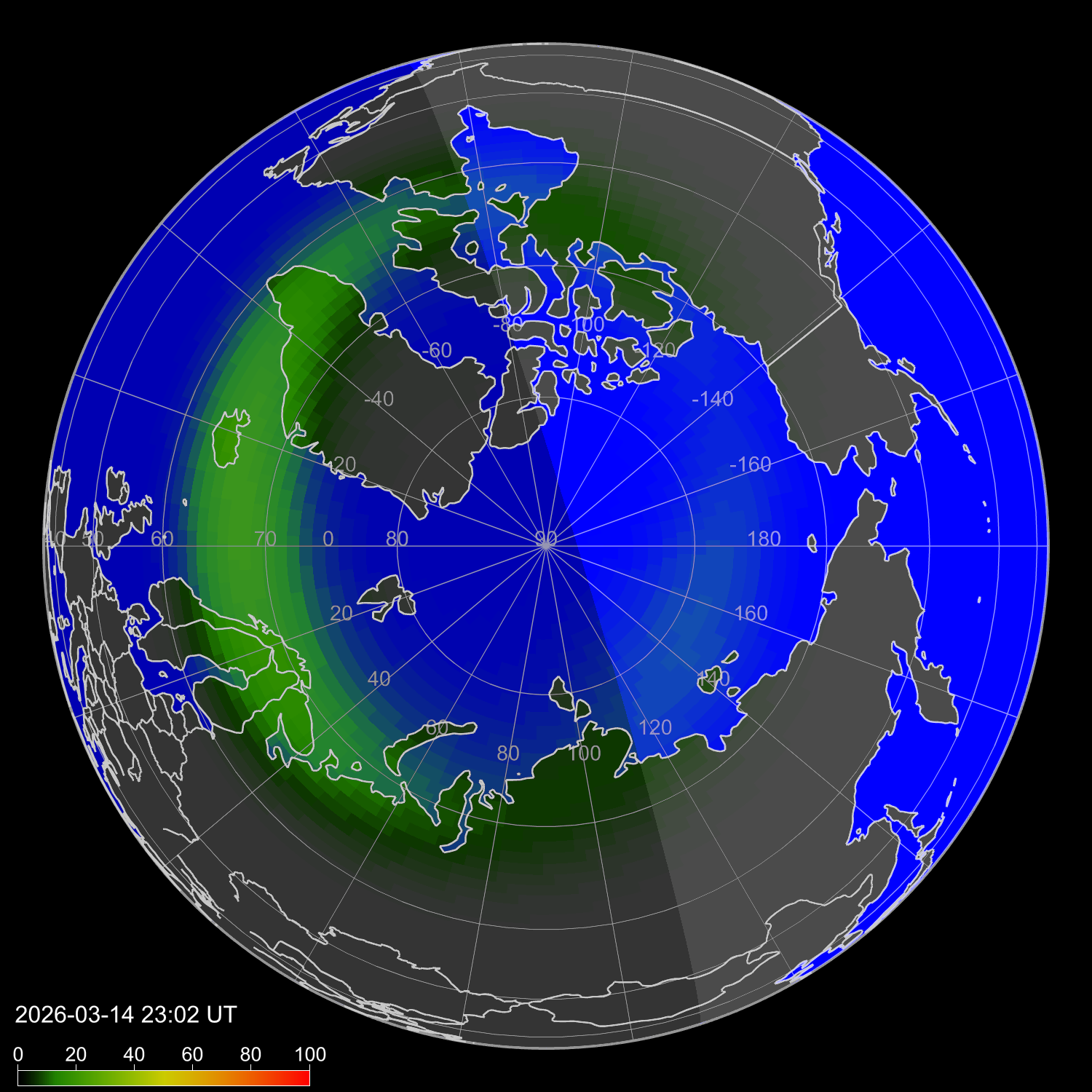 Интенсивность полярных сияний