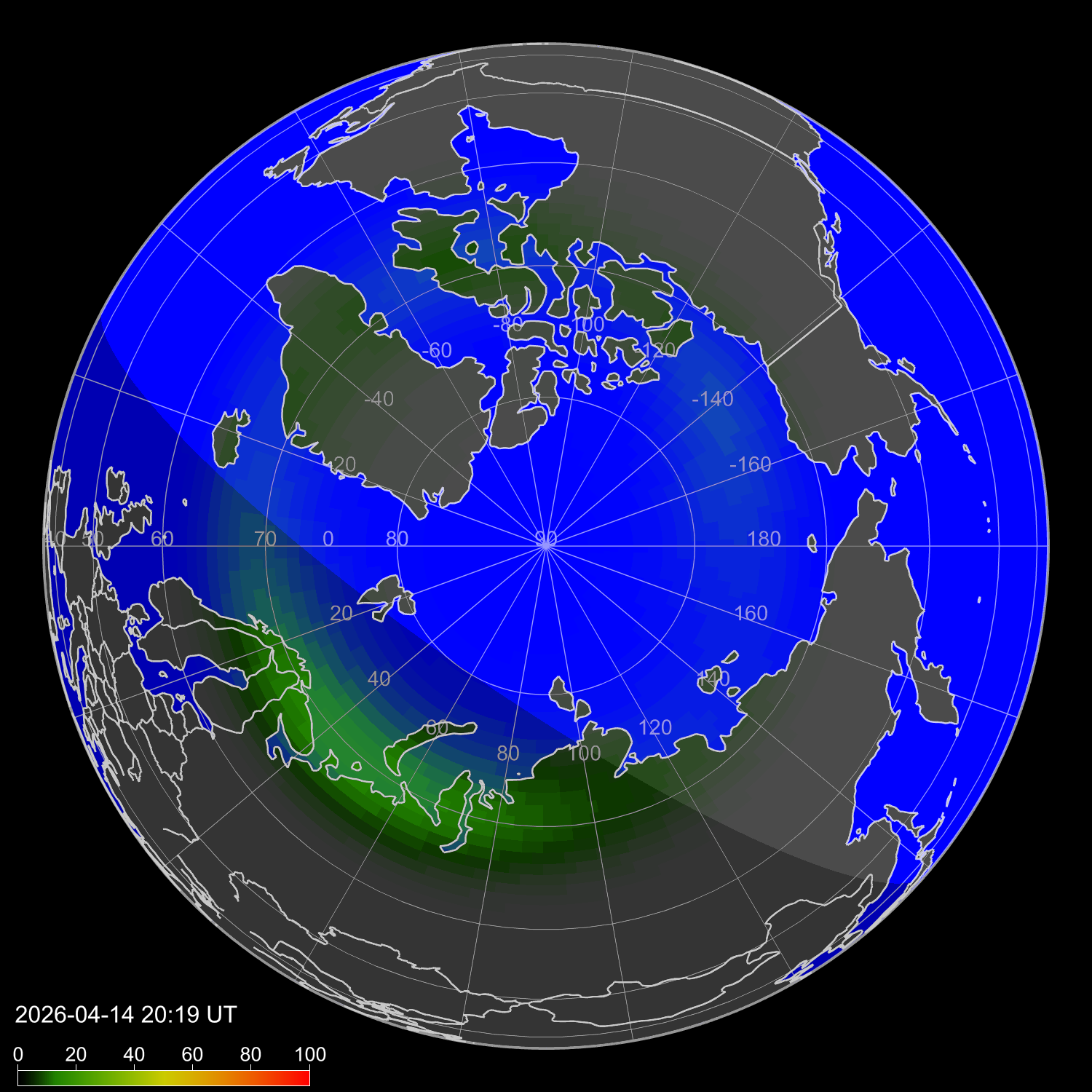 Интенсивность полярных сияний