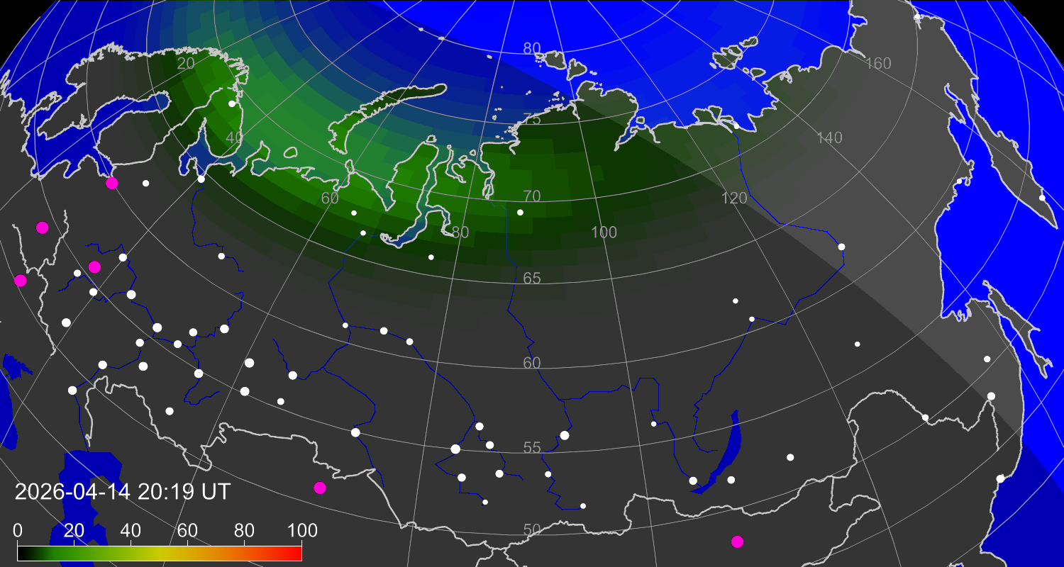 Зона полярных (северных) сияний над территорией Евразии