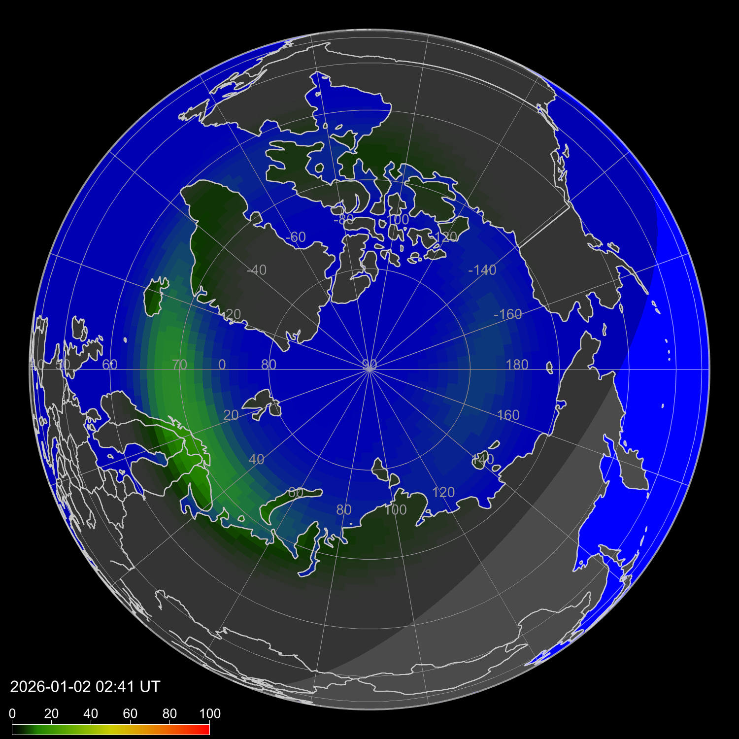 Зона полярных сияний в северном полушарии