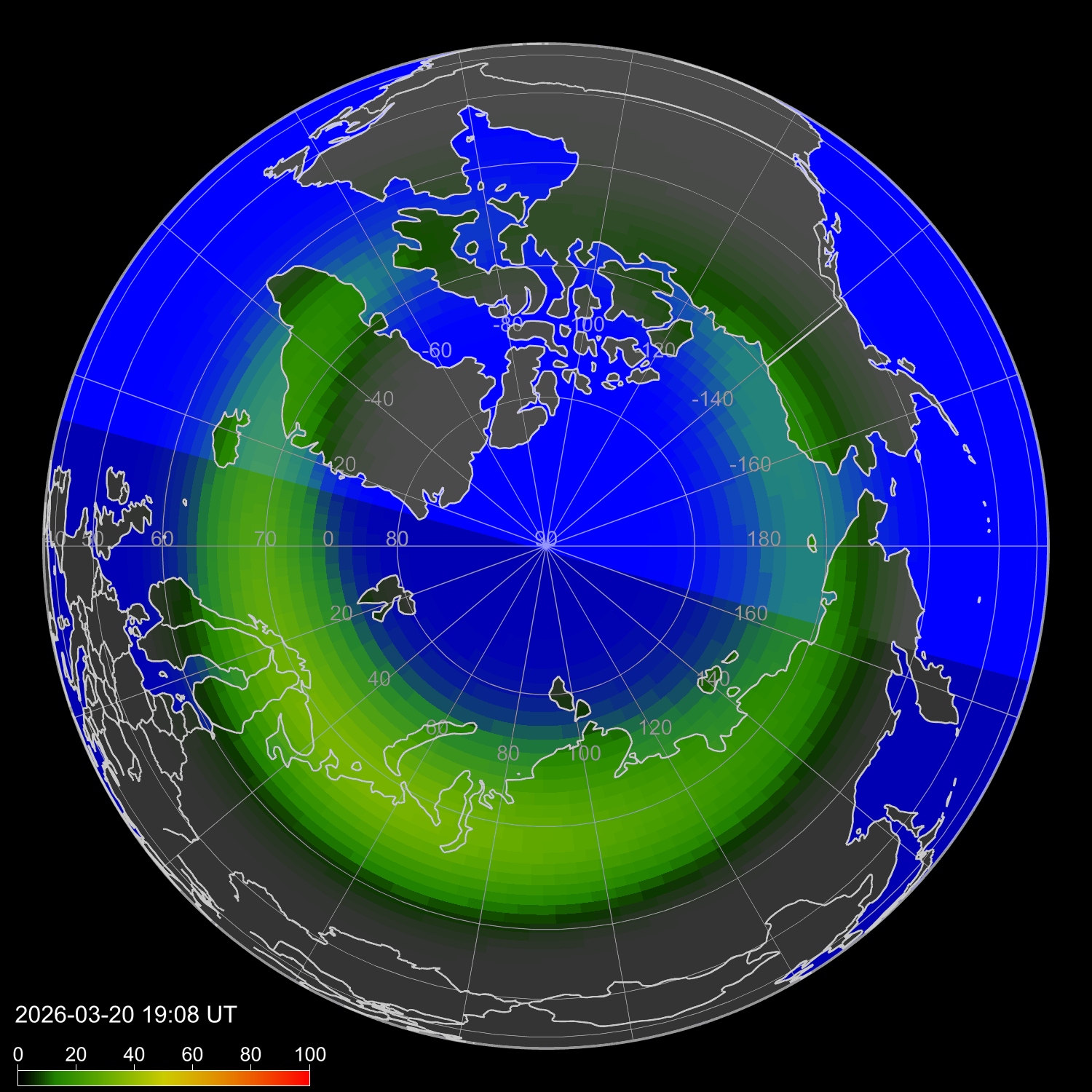 Зона полярных сияний в северном полушарии