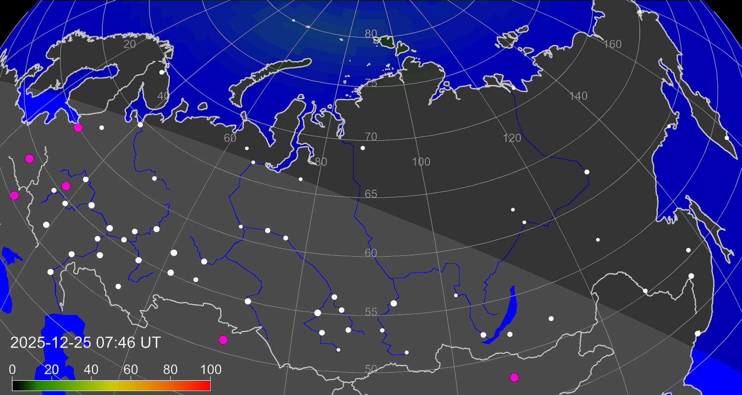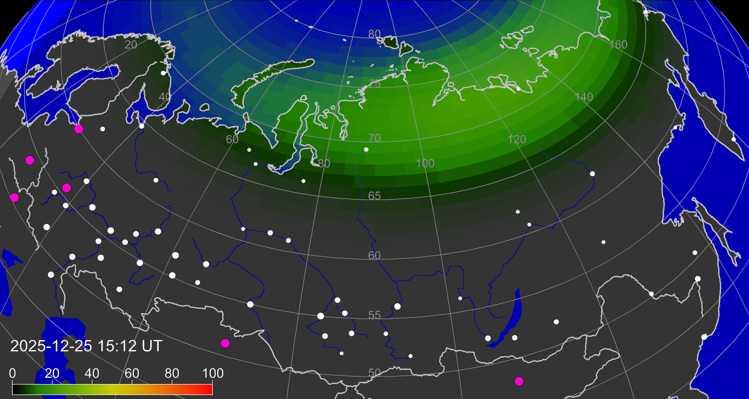 Вероятность полярных сияний в городах Российской Федерации