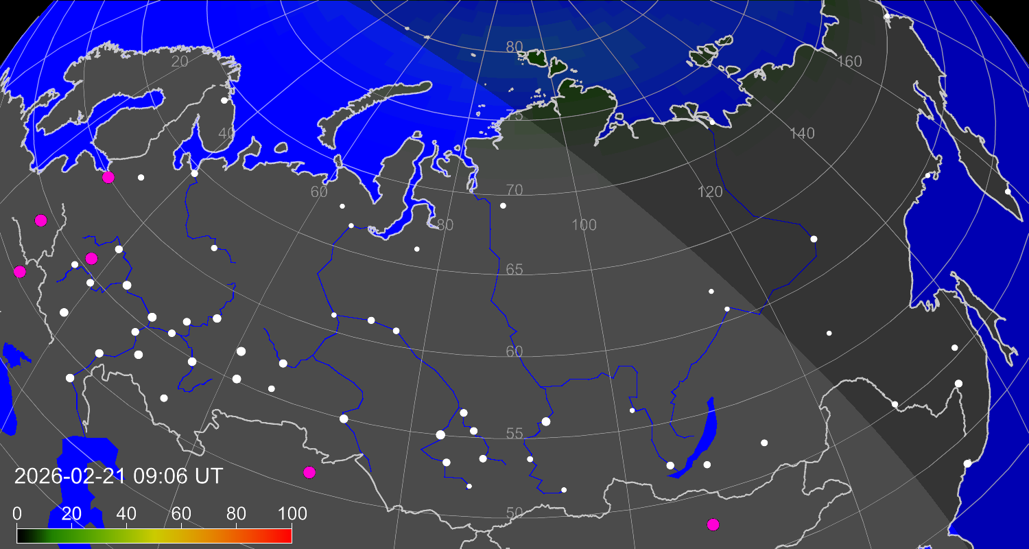 Вероятность полярных сияний в городах Российской Федерации
