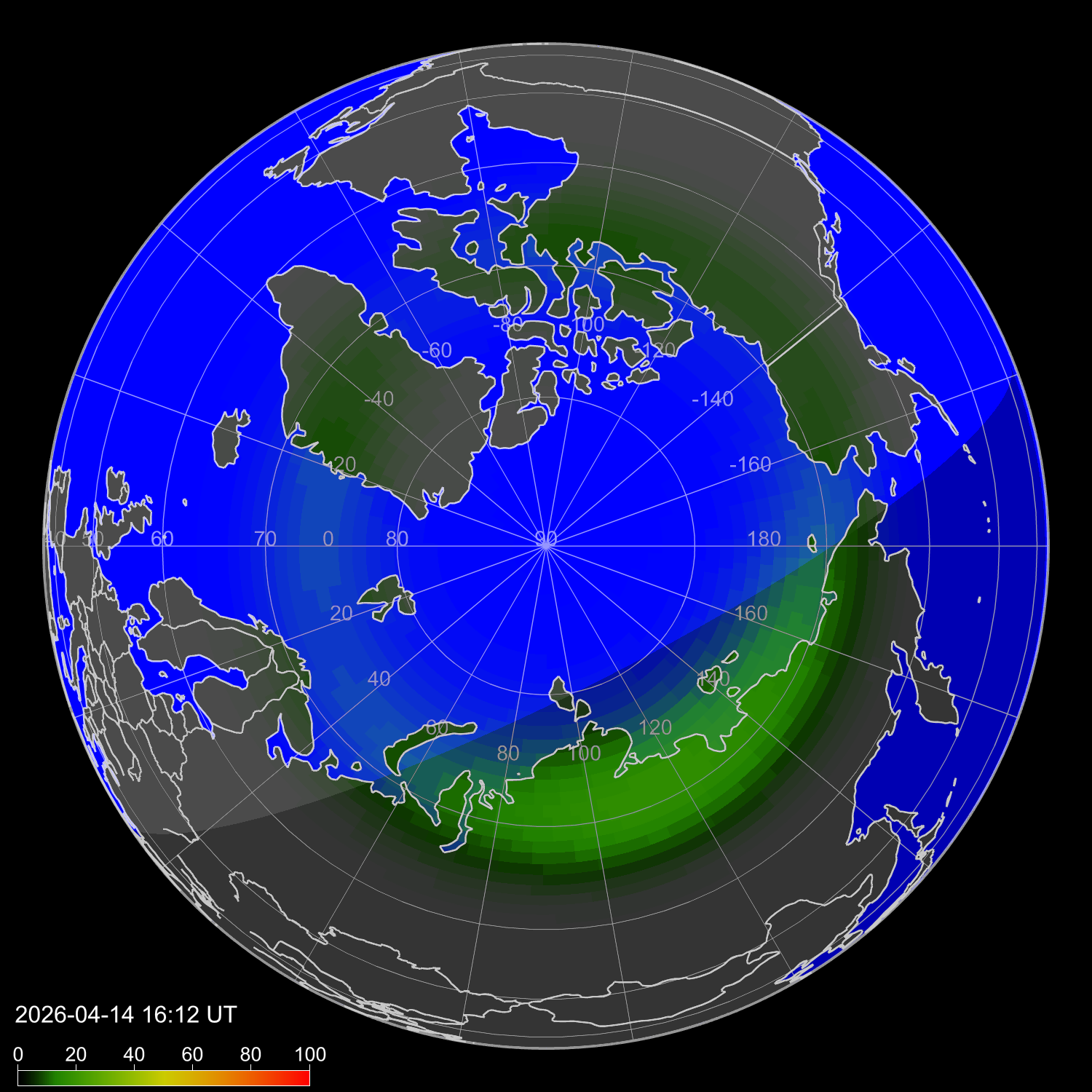 Вероятность полярных сияний Коцебу