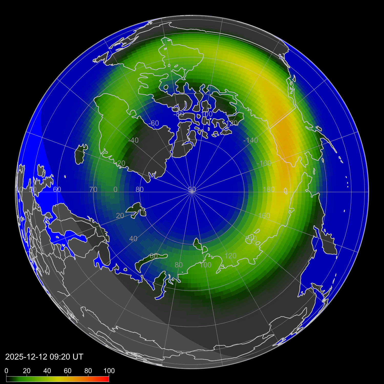 Интенсивность полярных сияний