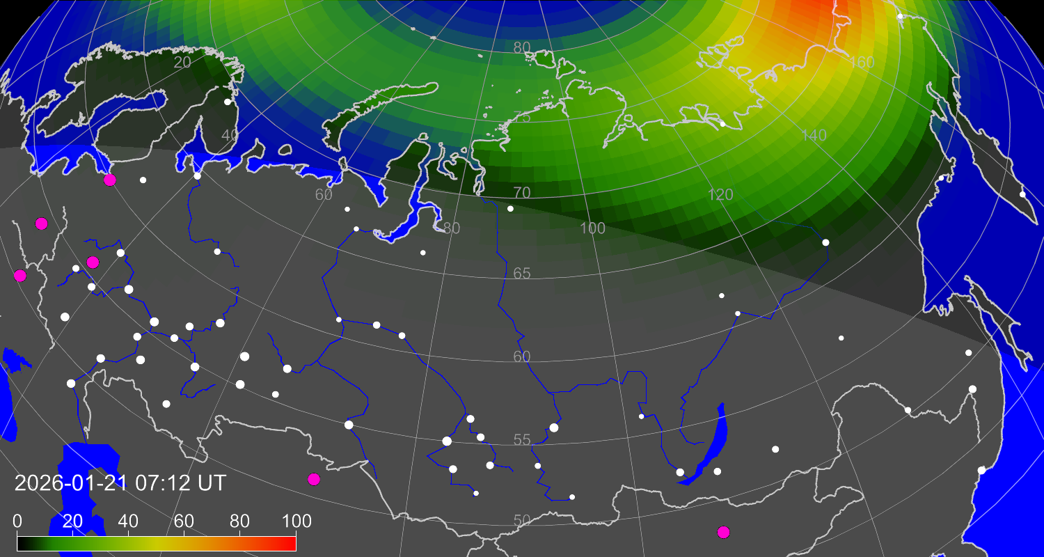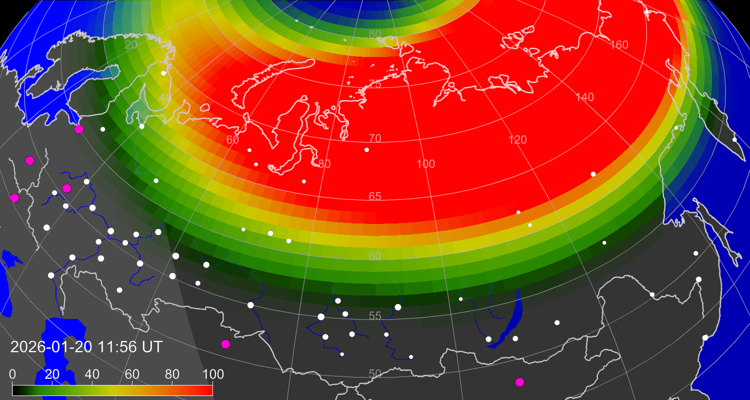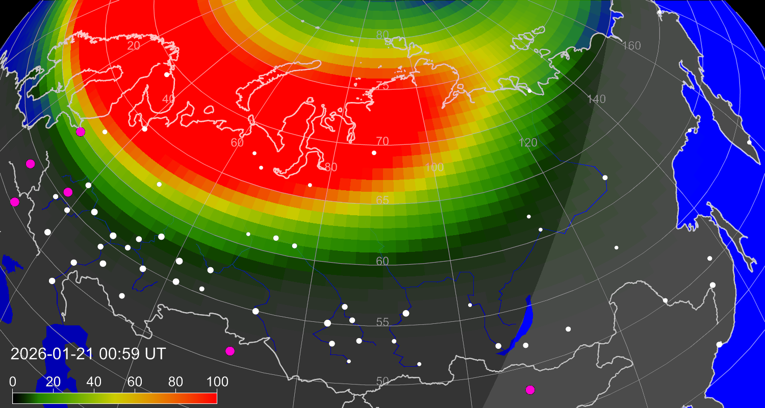 Вероятность полярных сияний в Магадане