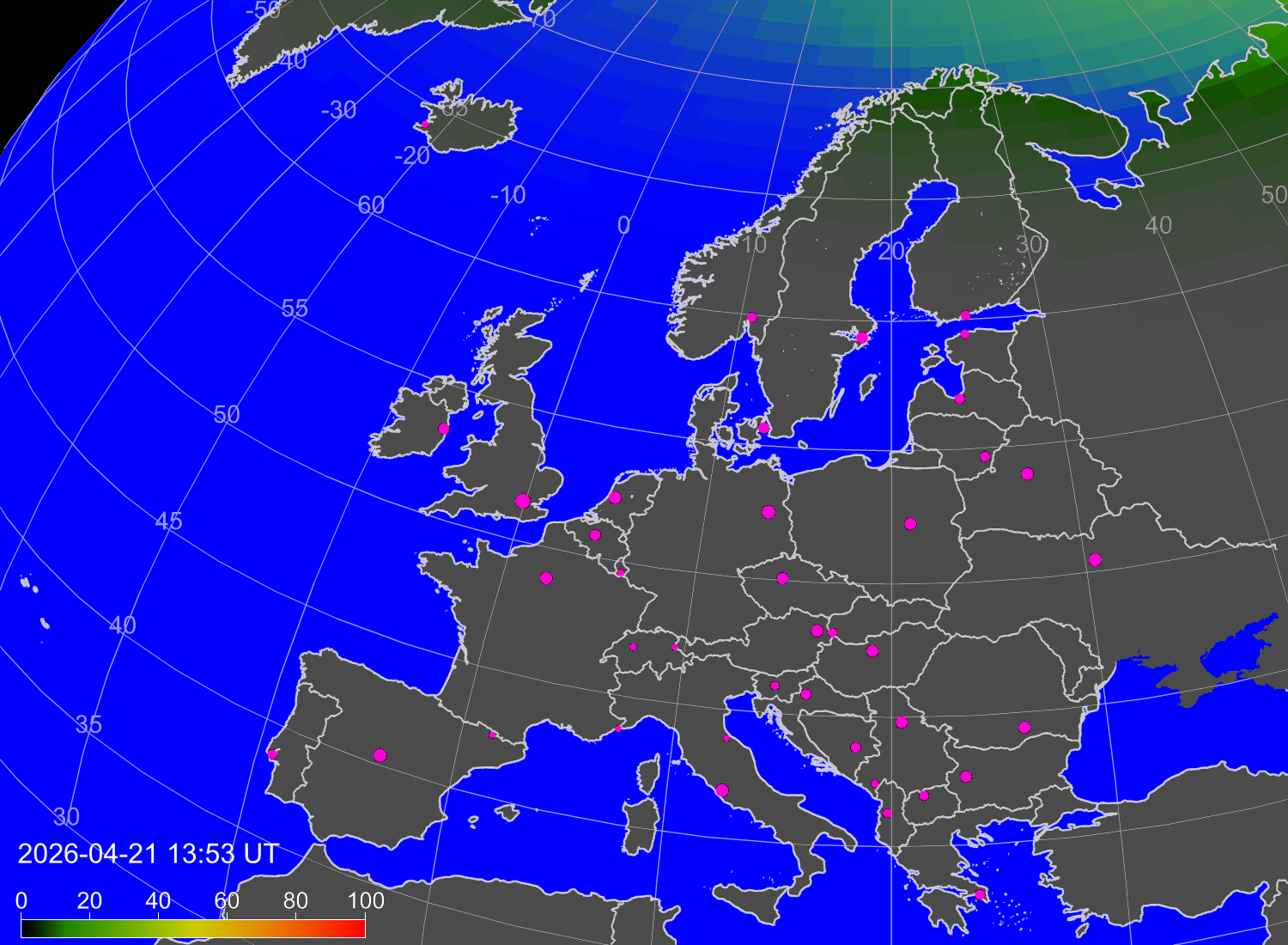 Вероятность полярных сияний в городах Европы