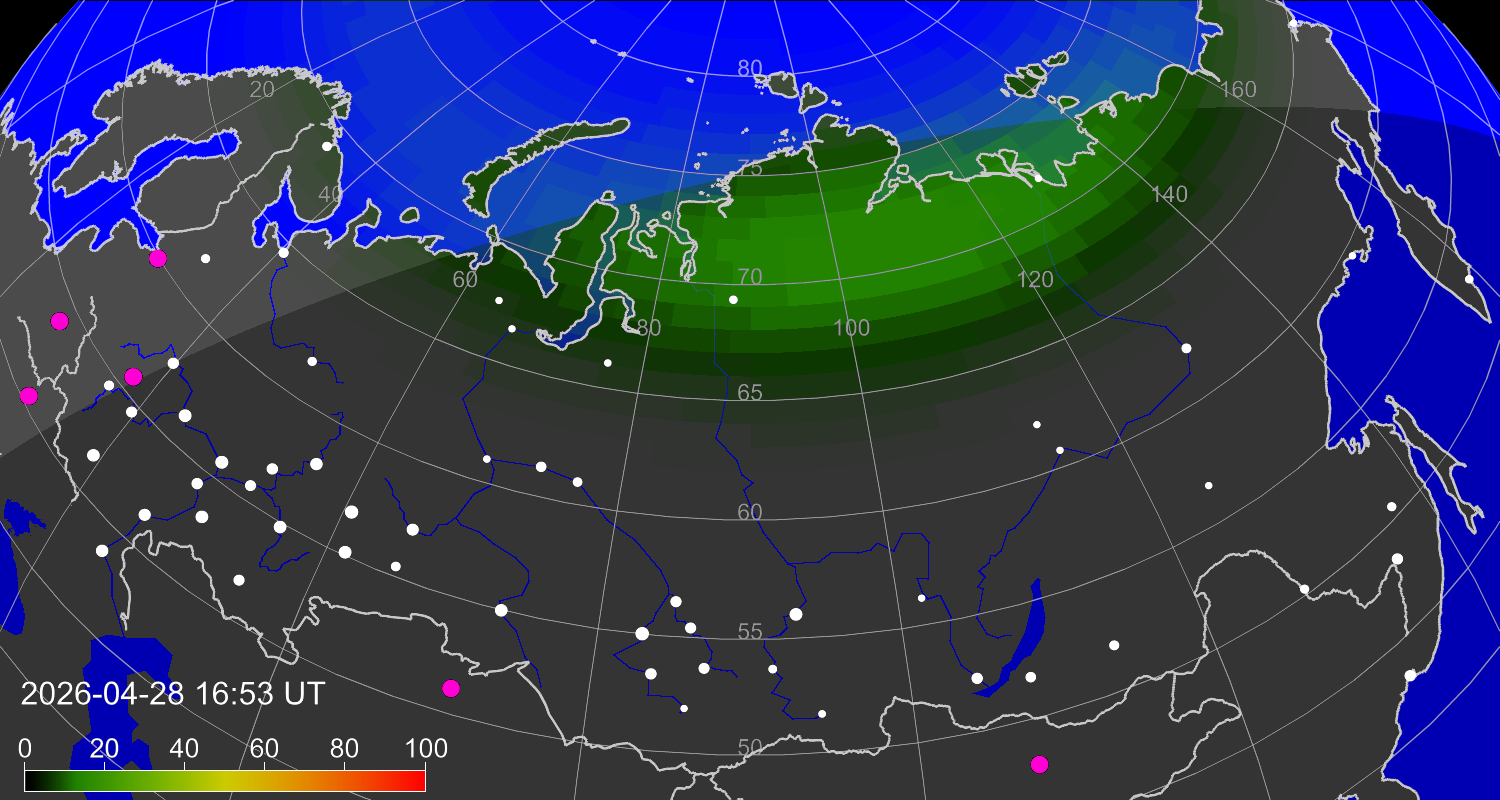 Зона полярных (северных) сияний над территорией Евразии