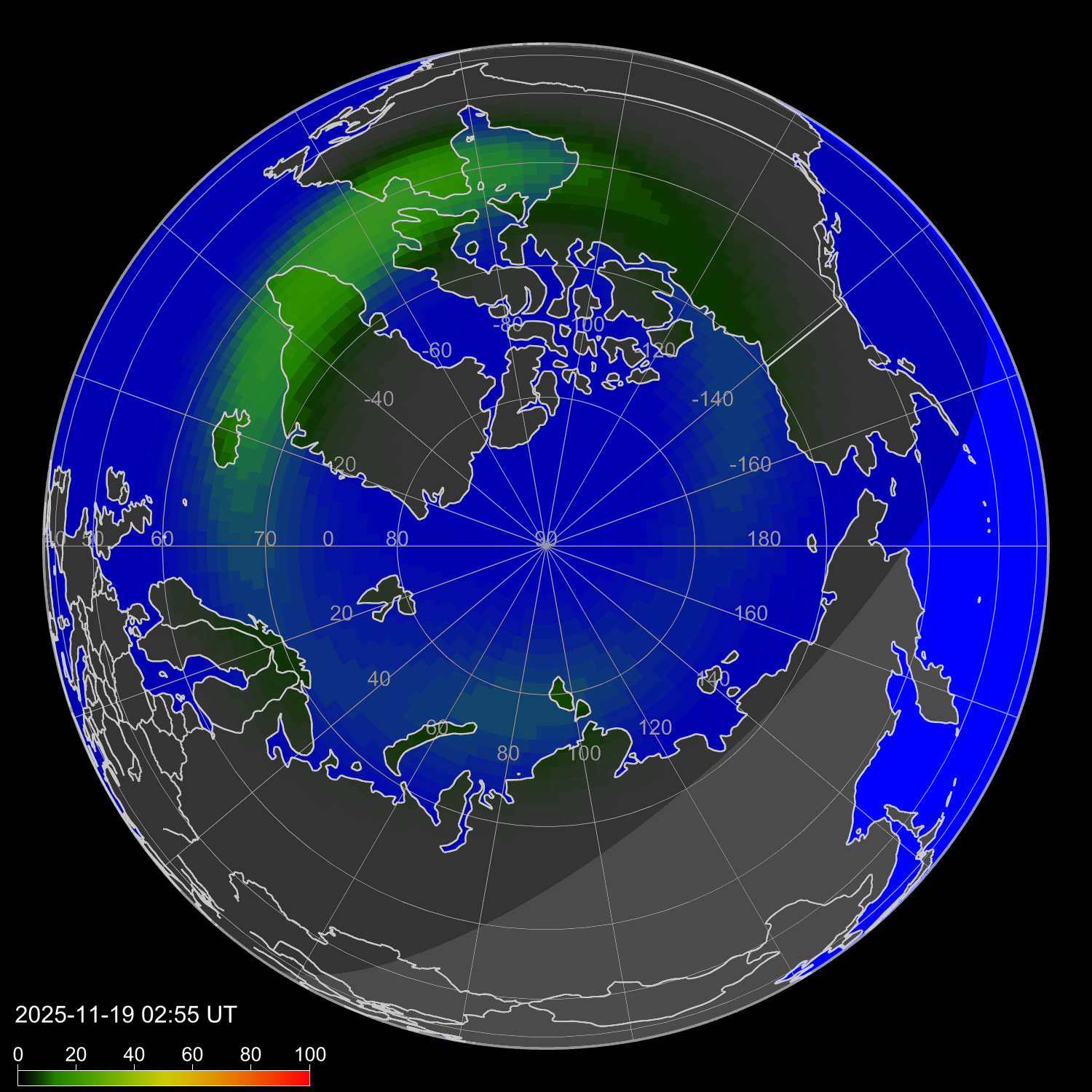 Интенсивность полярных сияний