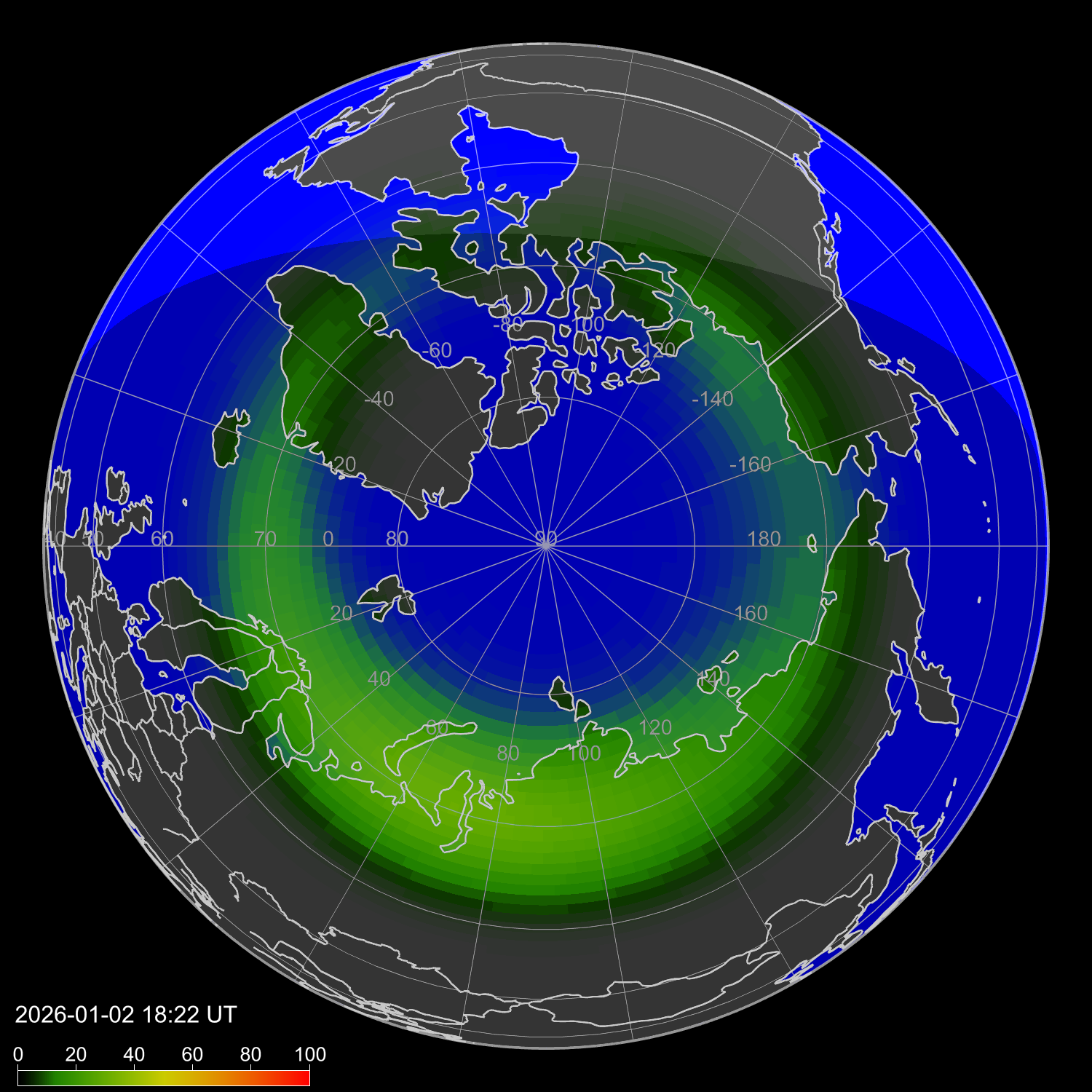 Зона полярных сияний в северном полушарии