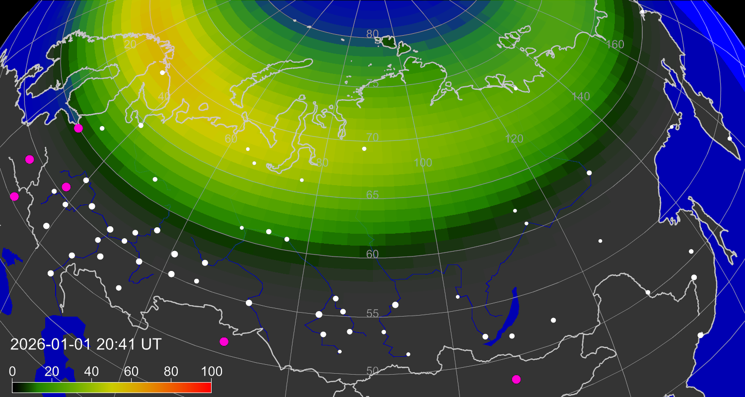Вероятность полярных сияний в Москве
