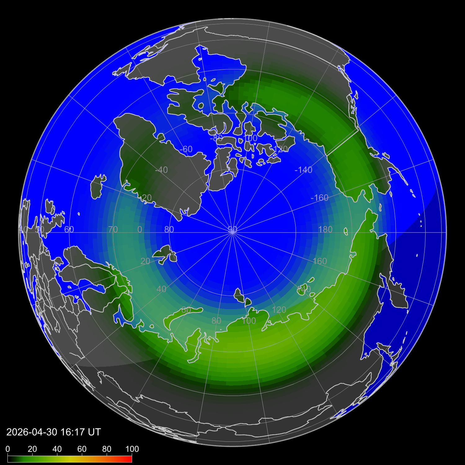 Интенсивность полярных сияний