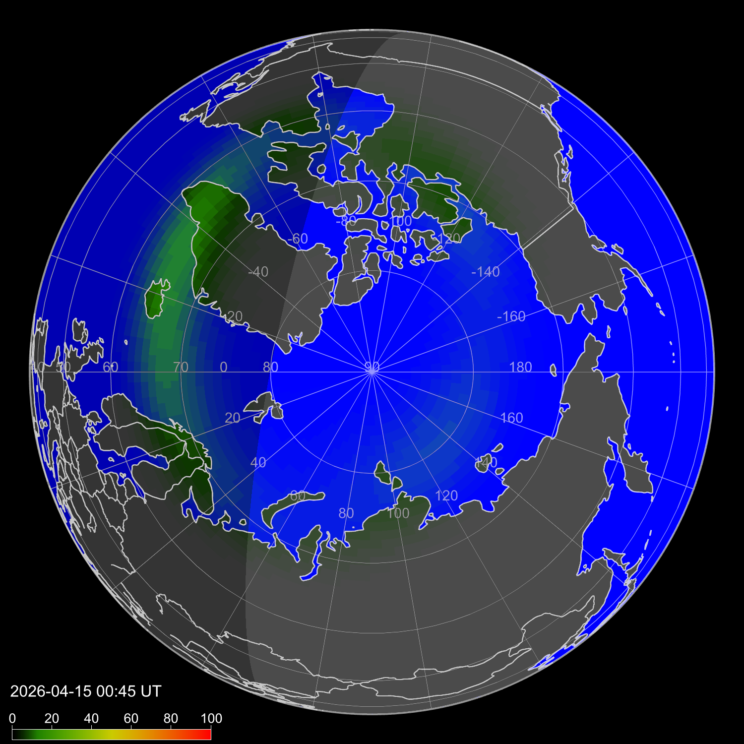 Вероятность полярных сияний Нью-Дели