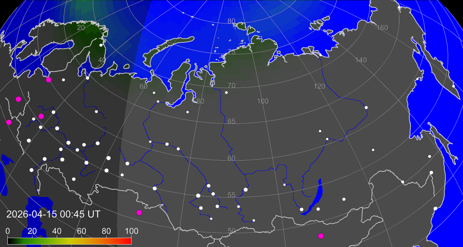 Зона полярных (северных) сияний над территорией Евразии