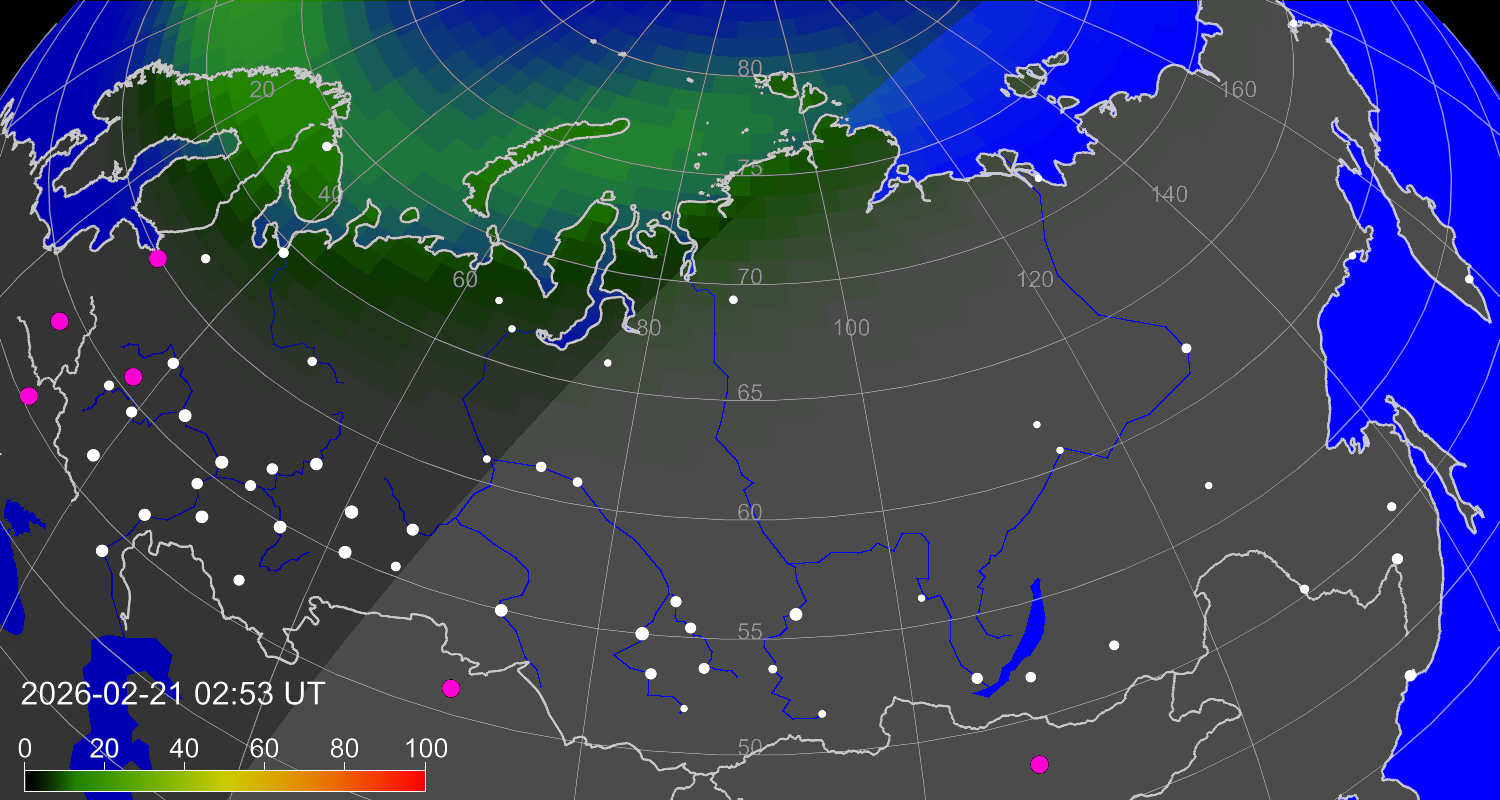 Вероятность полярных сияний в городах Российской Федерации