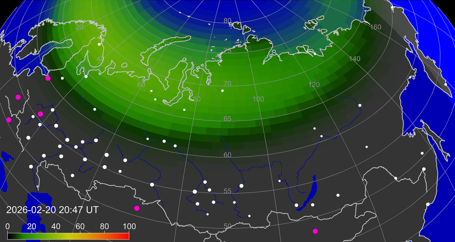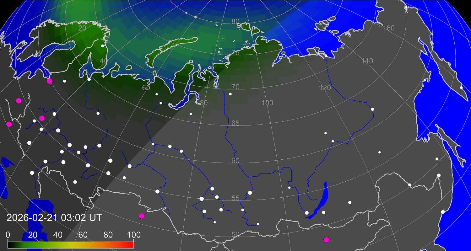 Вероятность полярных сияний в городах Российской Федерации