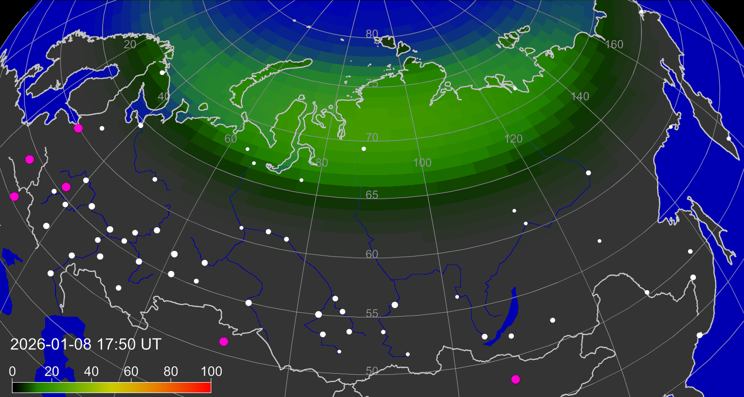 Вероятность полярных сияний в городах Российской Федерации