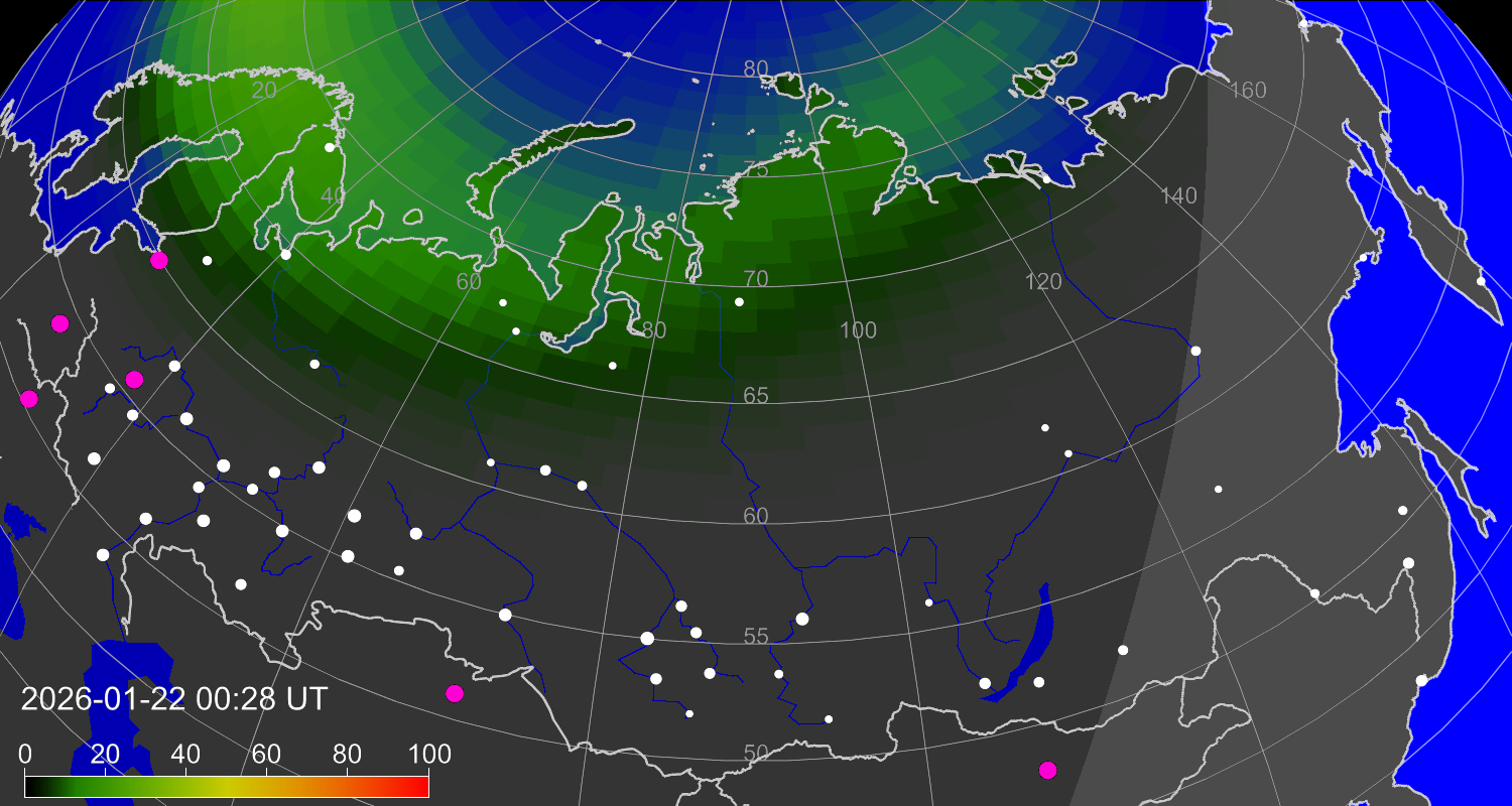 Вероятность полярных сияний в городах Российской Федерации