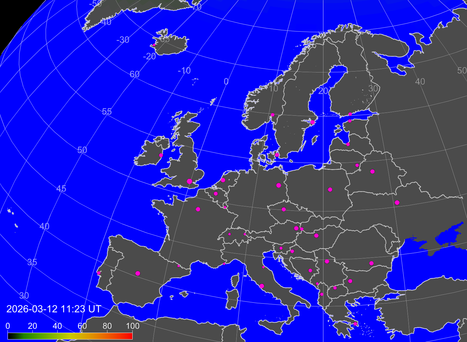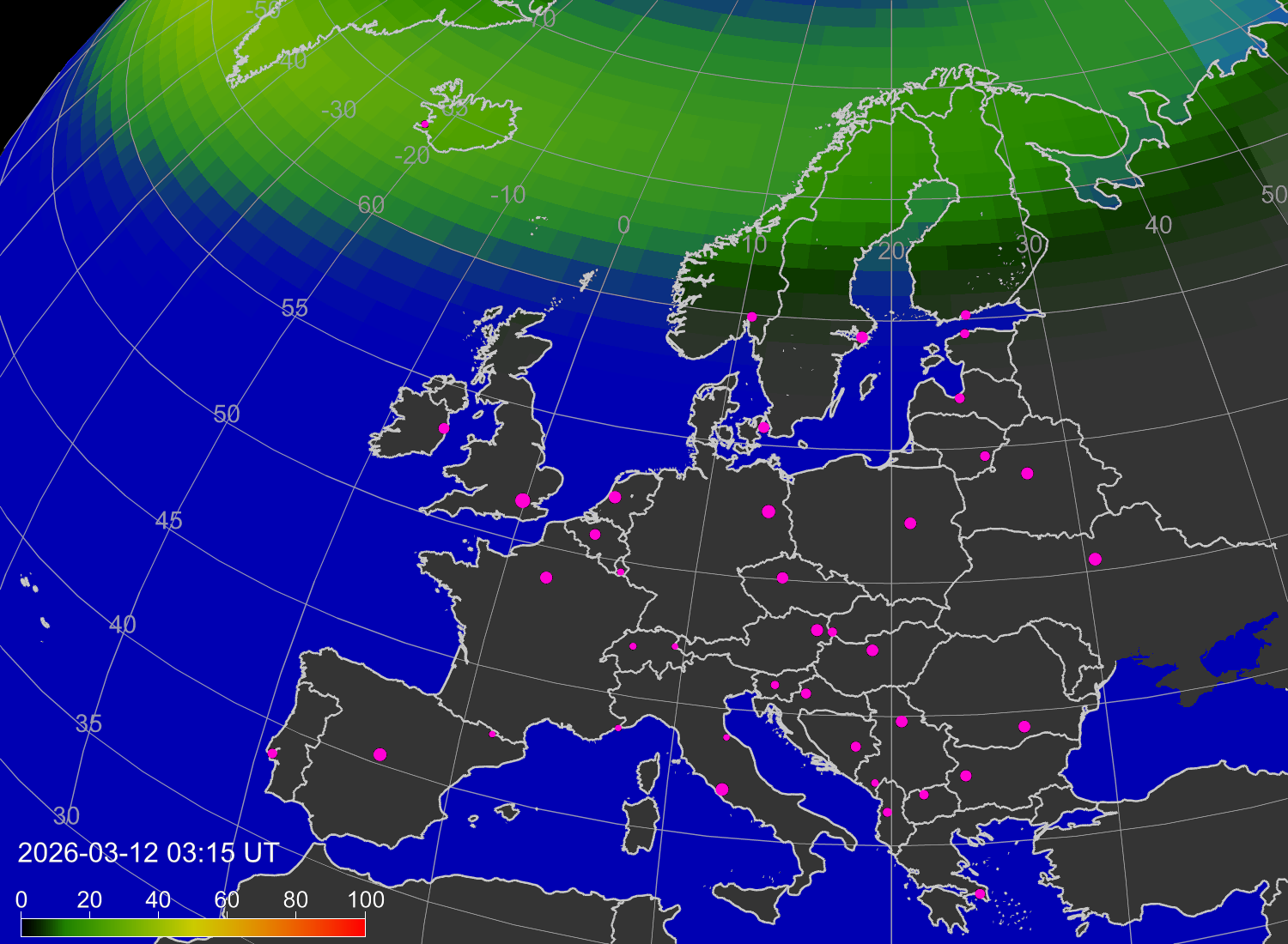 Вероятность полярных сияний в городах Европы
