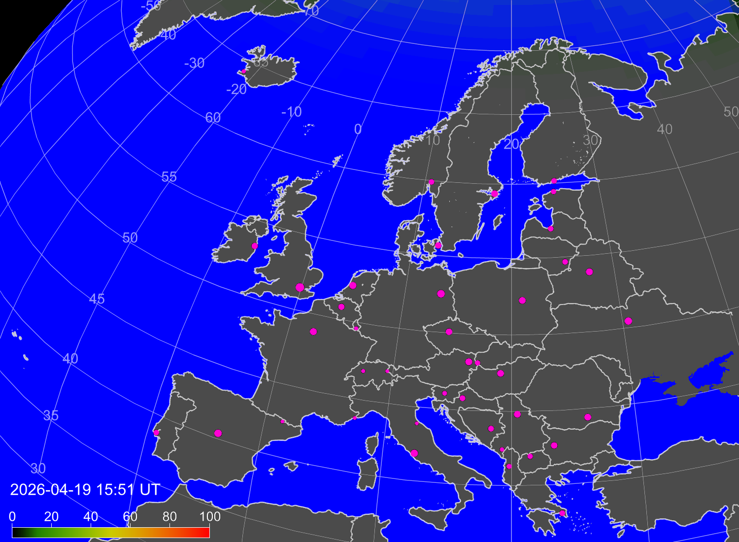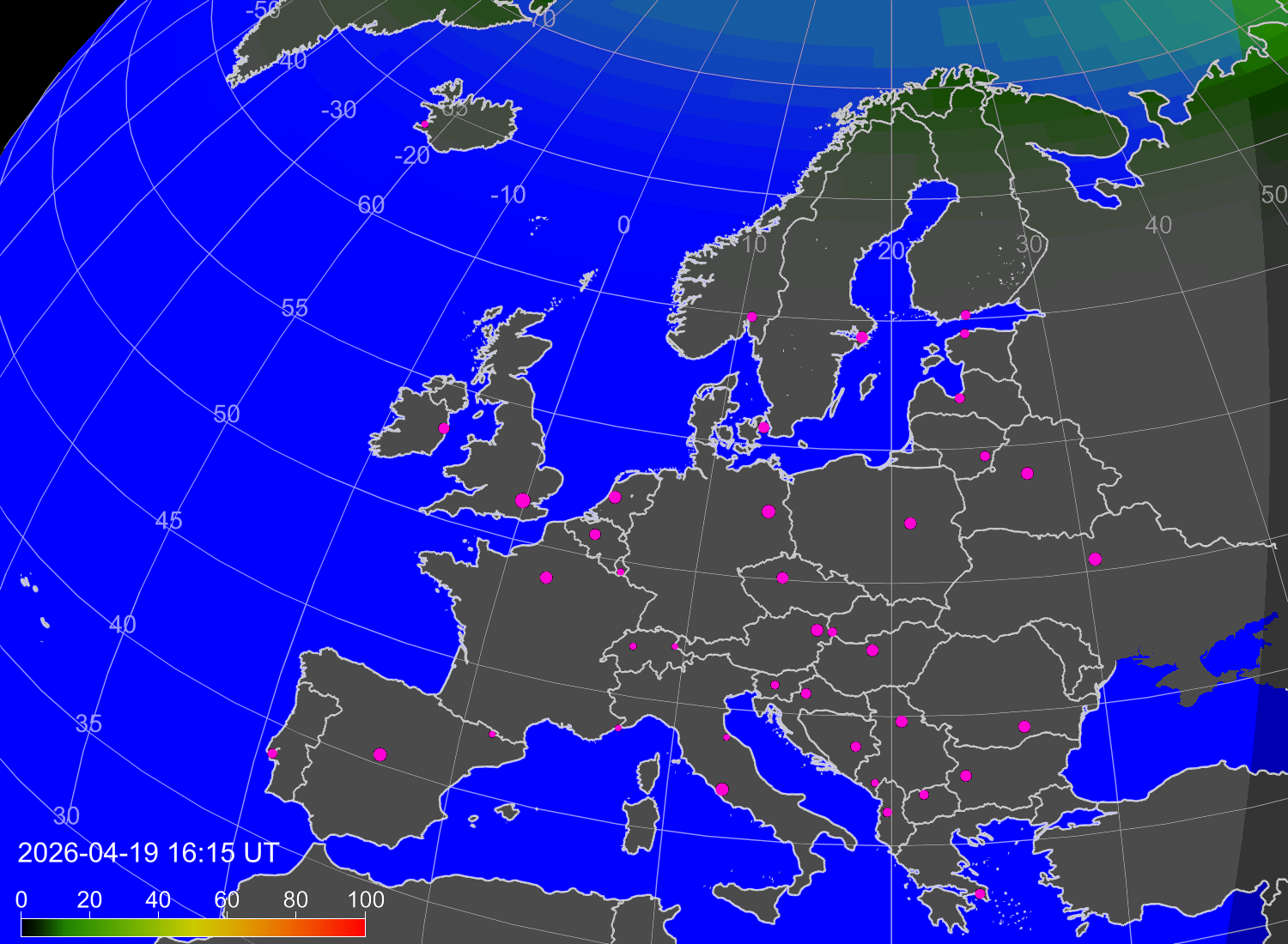 Вероятность полярных сияний в городах Европы