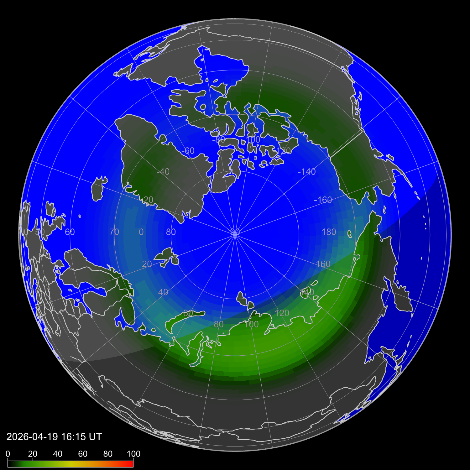 Интенсивность полярных сияний