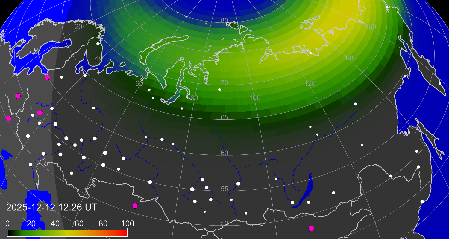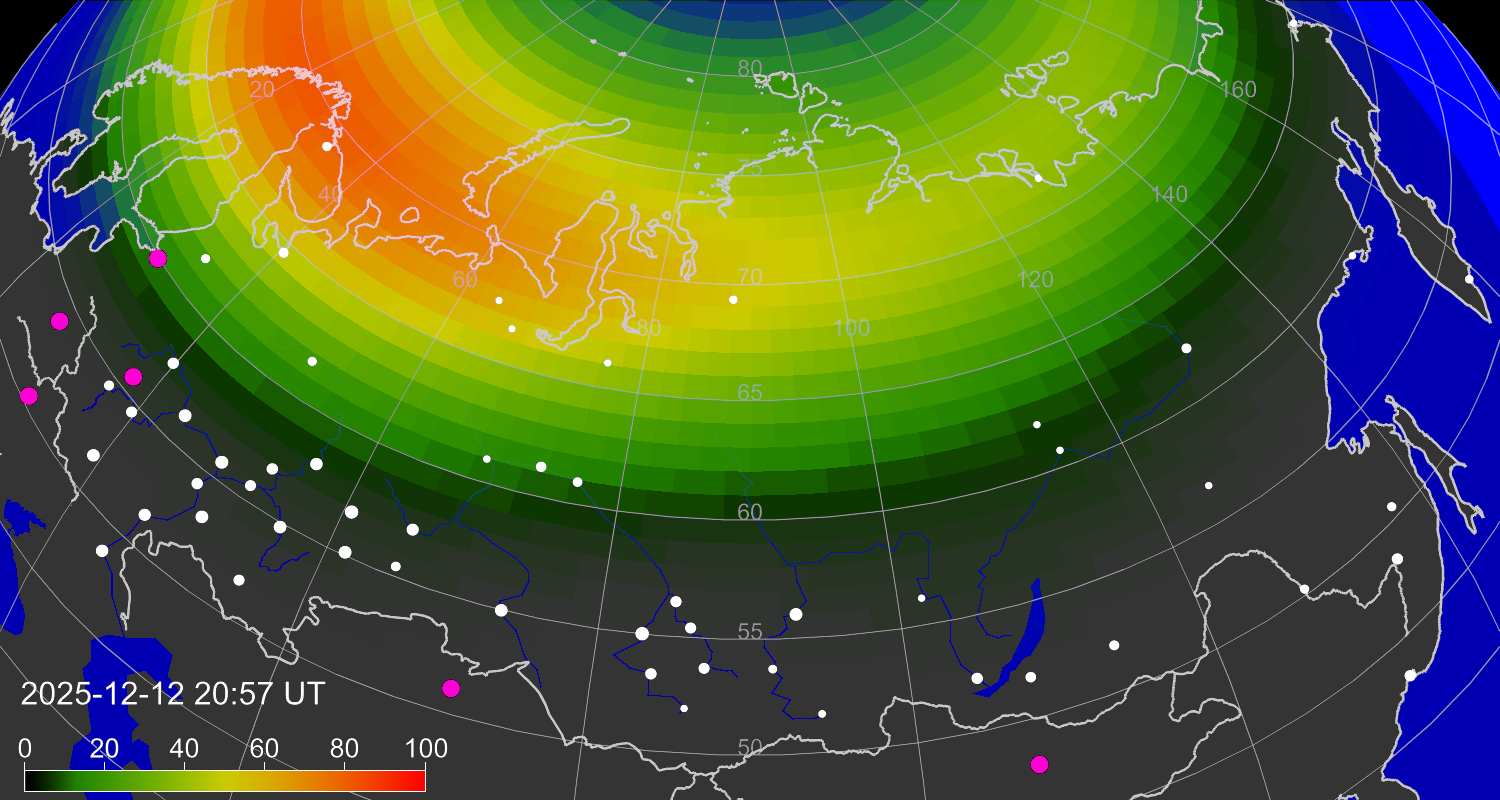 Вероятность полярных сияний в городах Российской Федерации