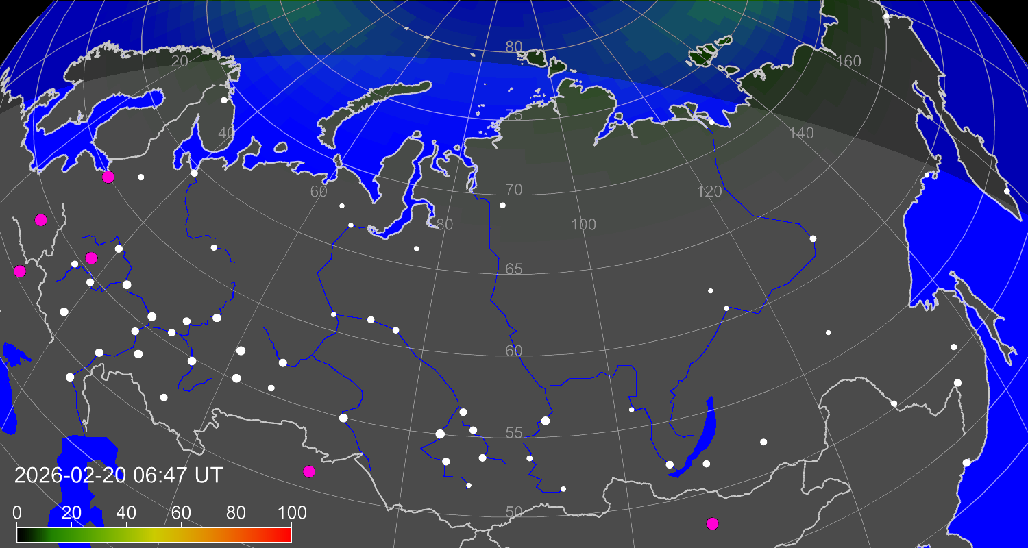 Вероятность полярных сияний в городах Российской Федерации
