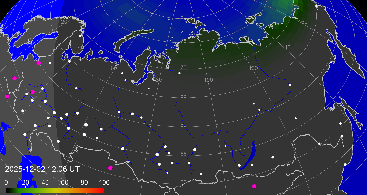 Зона полярных (северных) сияний над территорией Евразии