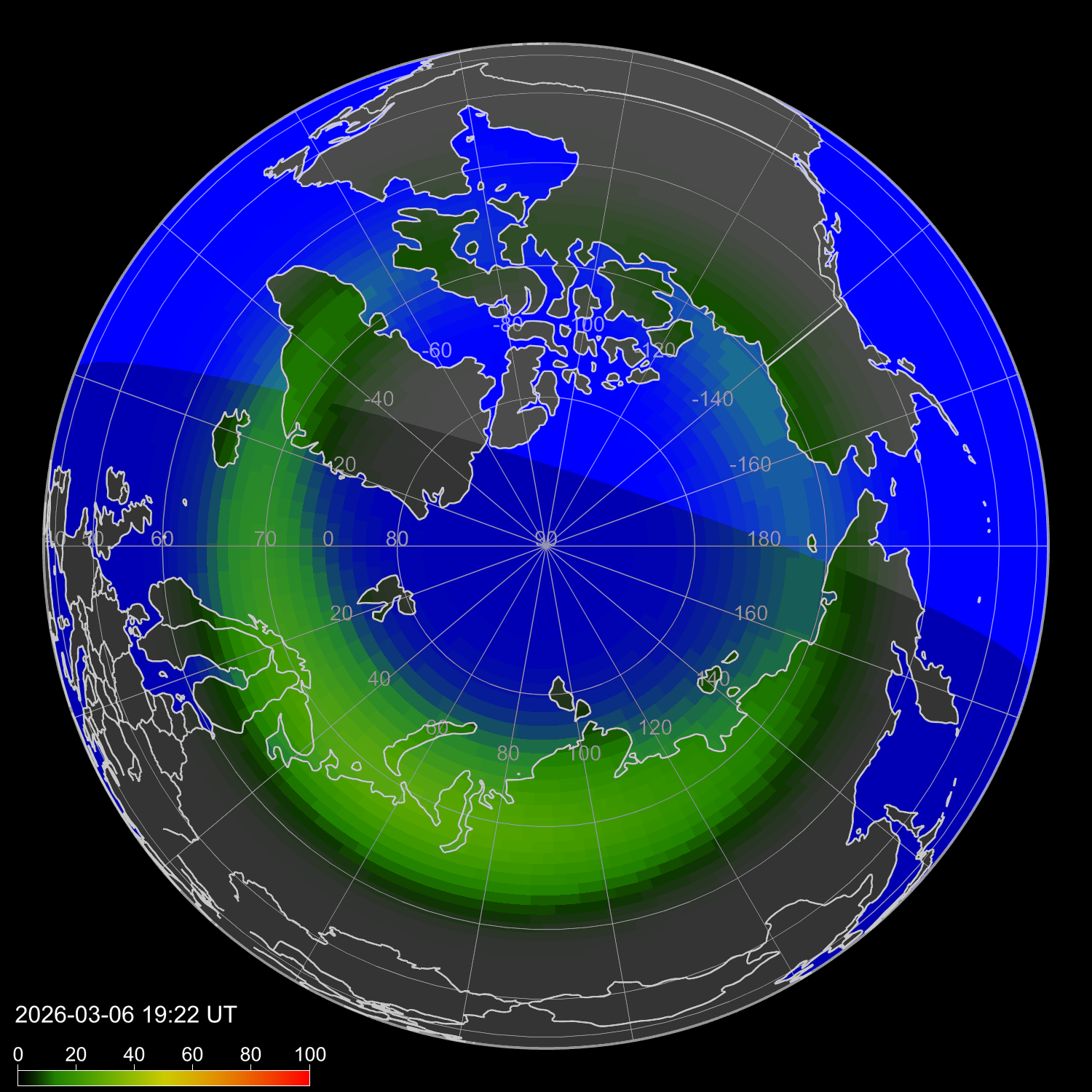 Зона полярных сияний в северном полушарии