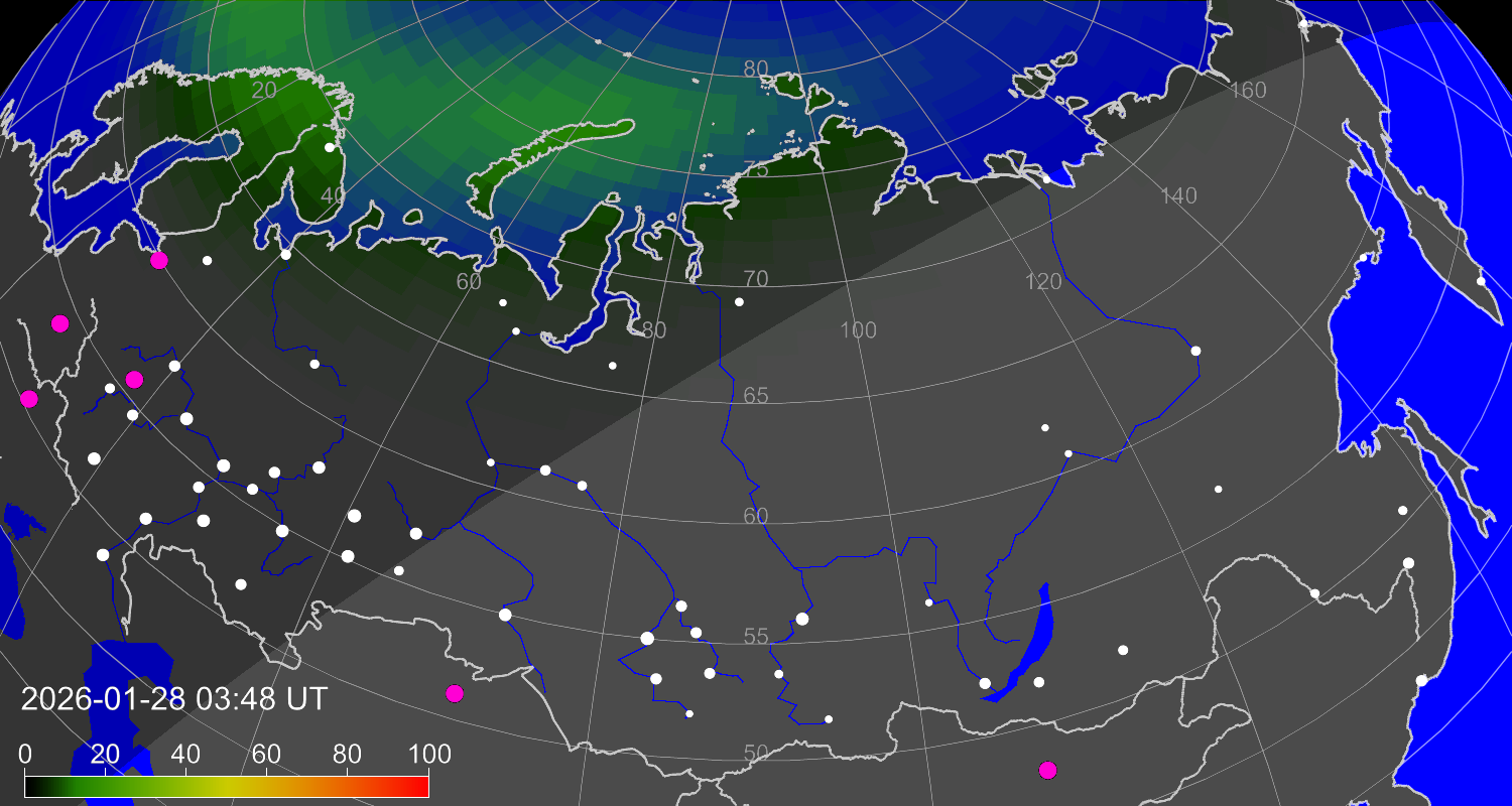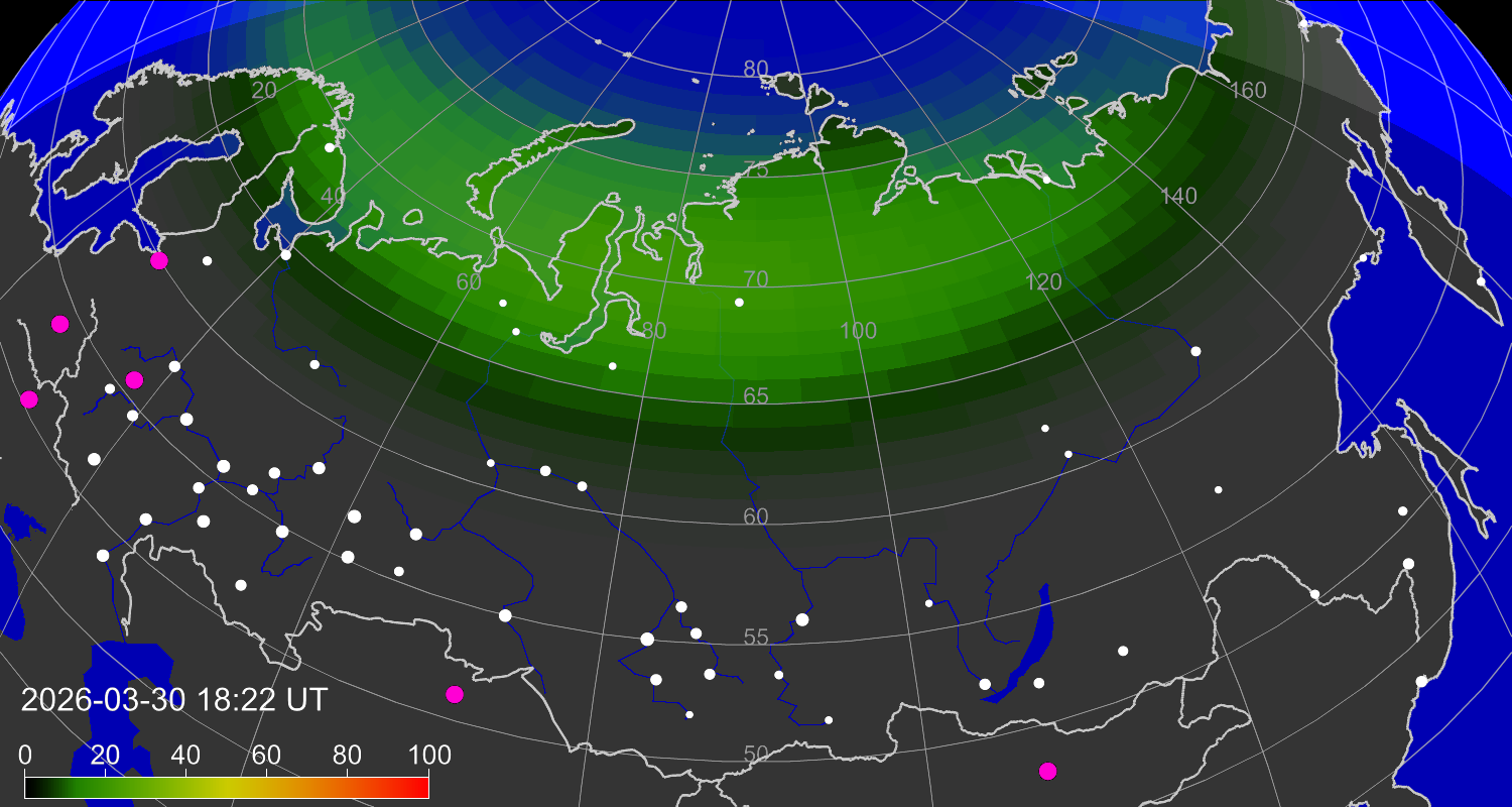 Вероятность полярных сияний в городах Российской Федерации